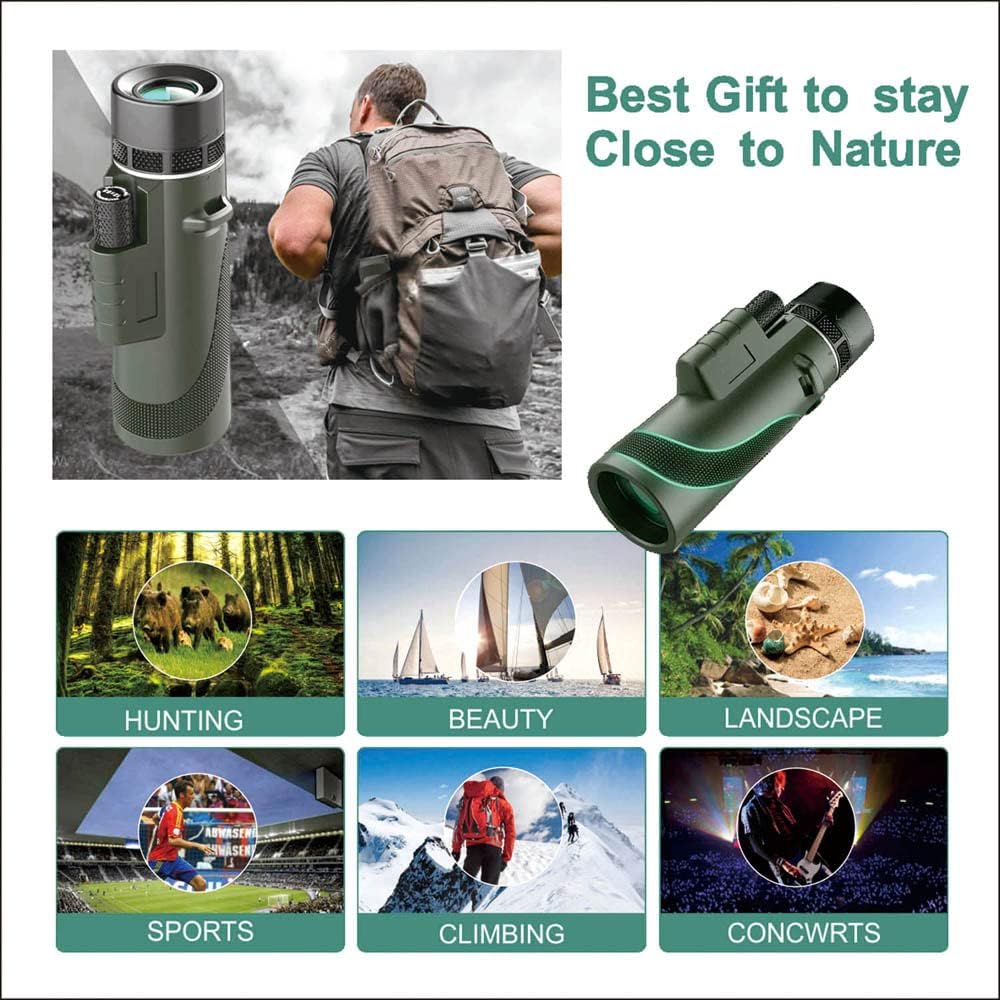 ✅محمول في بيئات متعددة: تلسكوب أحادي العين من BrilliantHouse مصمم خصيصًا لعشاق الهواء الطلق. إنها مناسبة لمجموعة متنوعة من الرياضات الخارجية: الصيد، مراقبة الحيوانات، التسلق، التخييم، السفر، المشي لمسافات طويلة، الرياضات المائية، ألعاب الكرة، مشاهدة المناظر الطبيعية، القيادة، الحفلات الموسيقية، المراقبة، الاستكشاف في الهواء الطلق وغيرها من الأنشطة. تعطيك تجربة بصرية مذهلة!