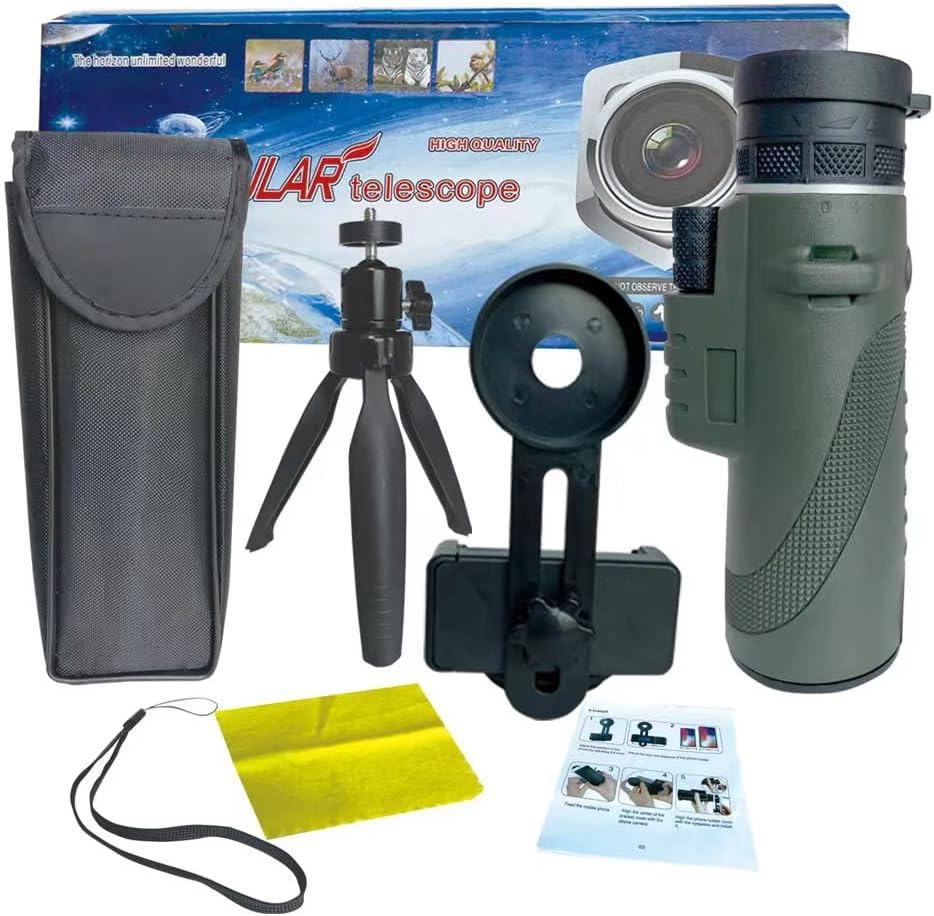 ✅مقاوم للماء ورؤية ليلية ويتكيف مع أي هاتف: تصميم مقاوم للماء مملوء بالنيتروجين IPX7 وبصريات محكمة الغلق على شكل حرف O توفر حماية ضد الماء والضباب والصدمات والغبار في أي طقس أو أي حالة. على عكس المنظار الأحادي الآخر الذي لا يمكن استخدامه في الظلام، يمكن استخدام منظار BrilliantHouse HD أحادي العين في بيئة رؤية ليلية منخفضة. مع محول الهاتف الذكي العالمي لتحديد المواقع بسرعة وحامل ثلاثي القوائم المتقدم، يمكن مطابقته مع نماذج مختلفة من الهواتف المحمولة. في العبوة: 1x أحادي العين، 1x حامل ثلاثي القوائم، 1x محول هاتف ذكي، 1x حقيبة حمل، 1x قطعة قماش لتنظيف العدسات، 1x خيط.