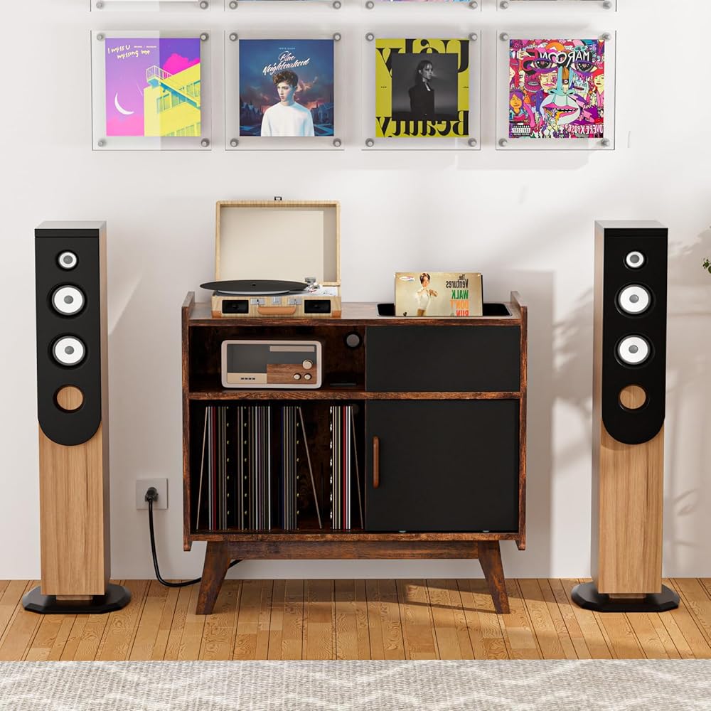 🎵【أبواب منزلقة وأرجل خشبية صلبة】: استمتع بتجربة مزيج من الوظائف والأناقة مع تصميم الباب المنزلق المبتكر لخزانة مشغل الأسطوانات، مما يخفي مساحة تخزين مخفية. تضمن الأرجل الخشبية الصلبة، المعززة بطبقة إضافية من التعزيز في القاعدة، ثباتًا ومتانة لا تتزعزع. أجهزة عالية الجودة مع موثوقية دائمة.