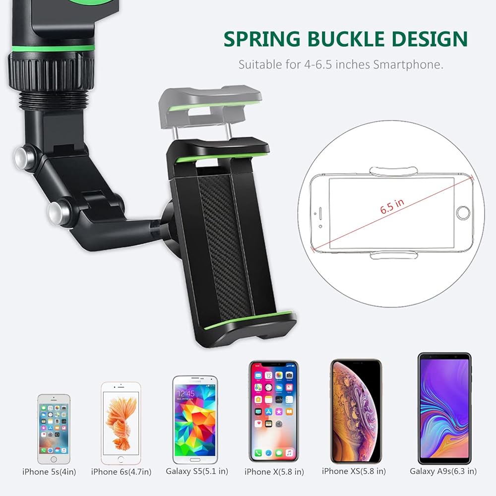 【إصدار جديد من حامل هاتف مرآة الرؤية الخلفية】يتميز حامل الهاتف بمرآة الرؤية الخلفية بتصميم دوار 360 درجة، ويمكن تعديله بسهولة على الشاشة الأفقية أو الرأسية، أو يمكنك ضبط هاتفك بأي زاوية تريدها.