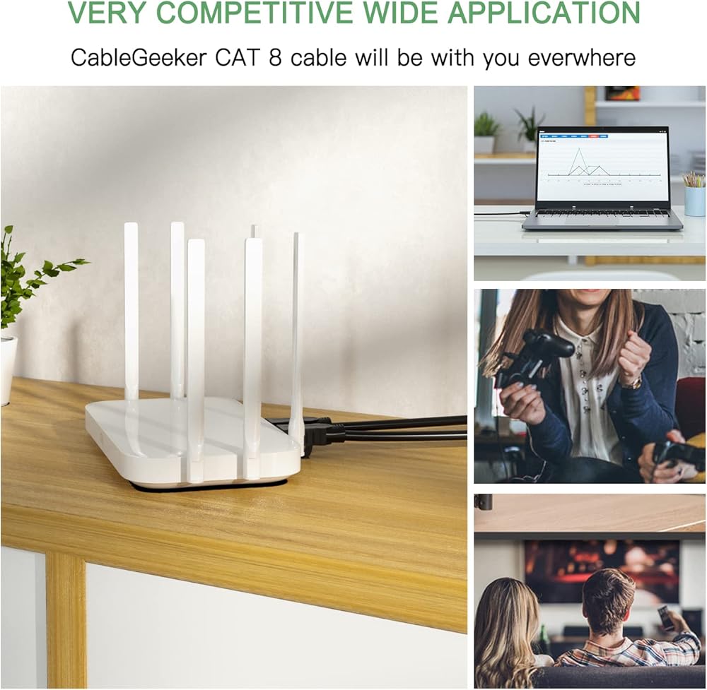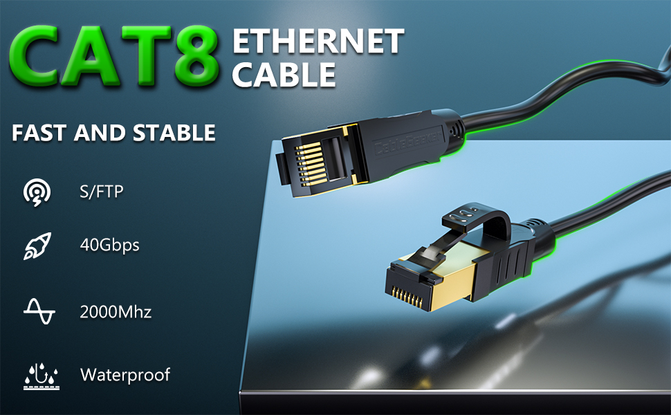 موصلات RJ45 وتوافق واسع: كابل RJ45 مع موصلين RJ45 محميين في كلا الطرفين، يعمل كابل Cat8 Ethernet بشكل مثالي مع محول الشبكة، وكاميرا IP، وأجهزة التوجيه، وNintendo Switch، وADSL، والمحولات، والمودم، وPS3، وPS4، وPS5، وX-box ، لوحة التصحيح، الخوادم، طابعات الشبكات، Netgear، NAS، هواتف VoIP، الكمبيوتر المحمول، المقرنة، المحاور، مقبس Keystone، التلفزيون الذكي، Imac وغيرها من الأجهزة ذات موصلات RJ45.