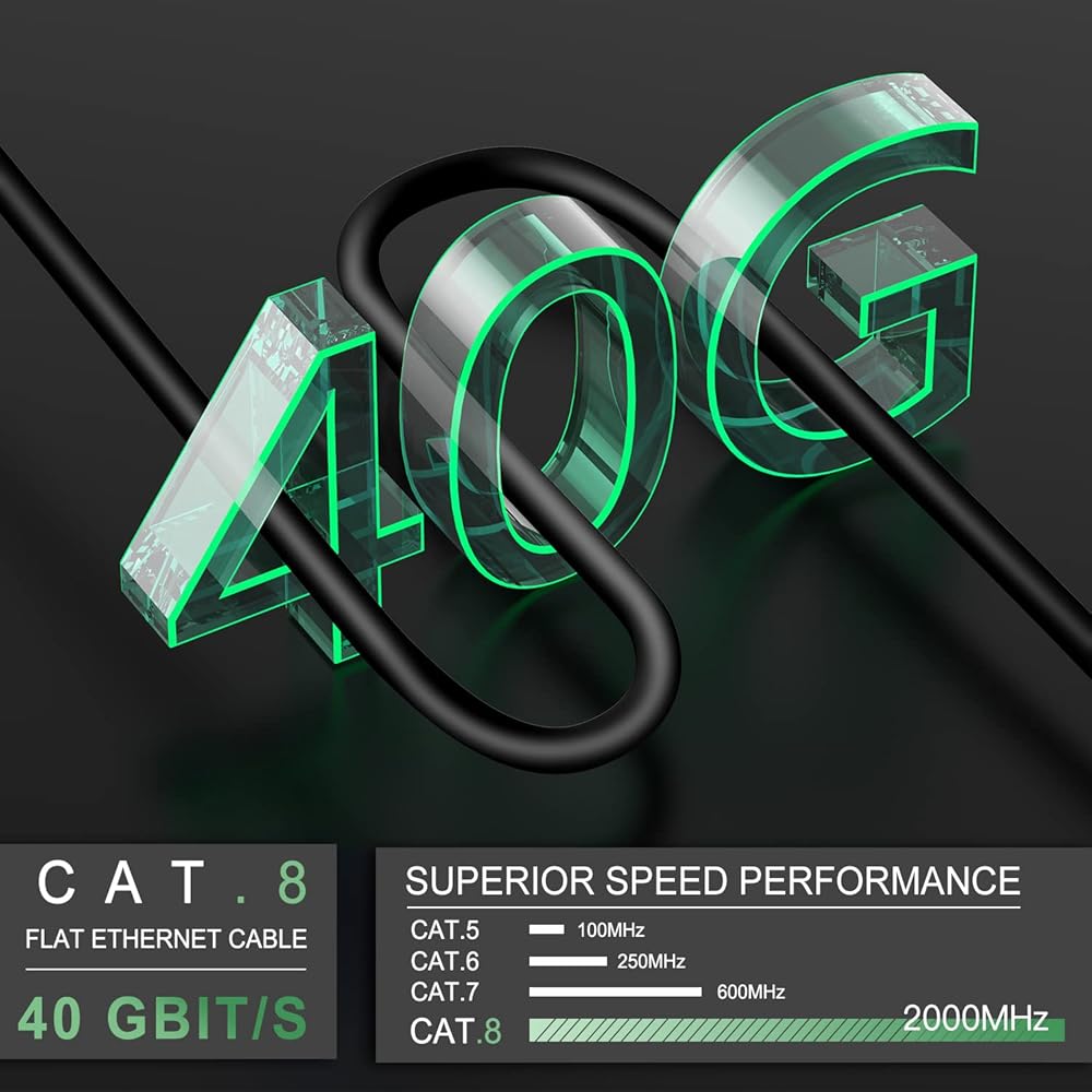 كابل إيثرنت Cat 8 بطول 6 أقدام، سرعة عالية 40 جيجابت في الثانية 2000 ميجا هرتز محمي 28AWG Cat8 كابل شبكة LAN مع موصل RJ45 مطلي بالذهب، خارجي وداخلي، مقاوم للأشعة فوق البنفسجية لجهاز التوجيه/الألعاب/الكمبيوتر الشخصي/المودم