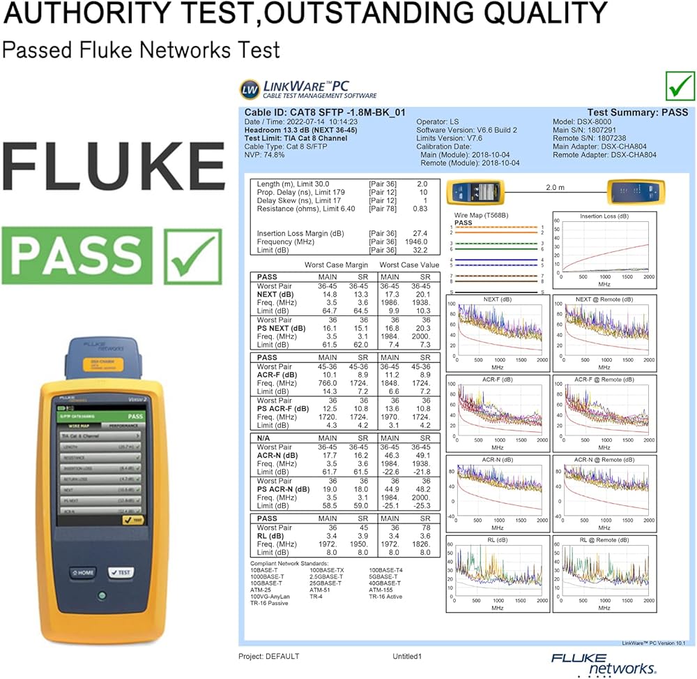 تم اختبار Fluke واعتماد الجودة: جميع كابلات Cat8 اجتازت اختبار محللي الكابلات الاحترافيين. محمي بسترة PVC عالية الجودة مقاومة للأشعة فوق البنفسجية، كابل Cat8 Ethernet ذو التصنيف الخارجي مضاد للشيخوخة. يمكنه تحمل أشعة الشمس المباشرة والطقس البارد والرطب والحار الشديد ولكنه لا يزال يعمل بكفاءة. مناسبة للاستخدام الخارجي والداخلي.