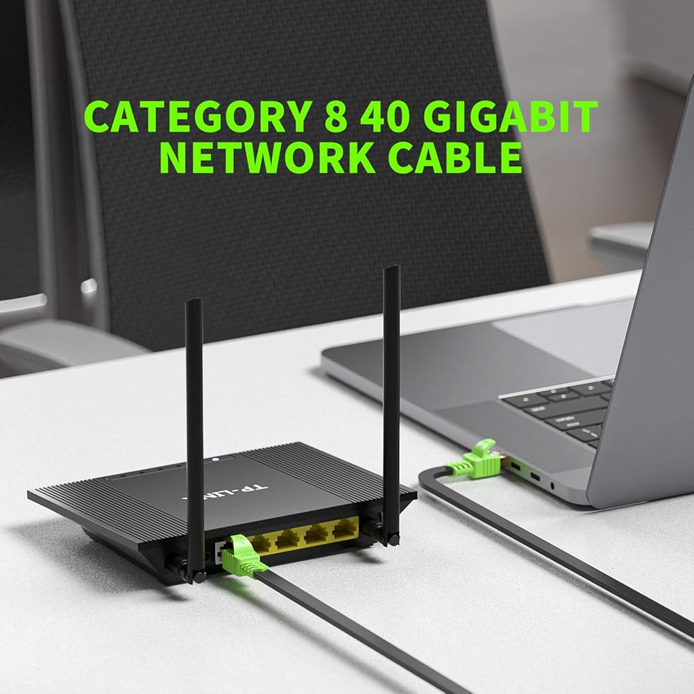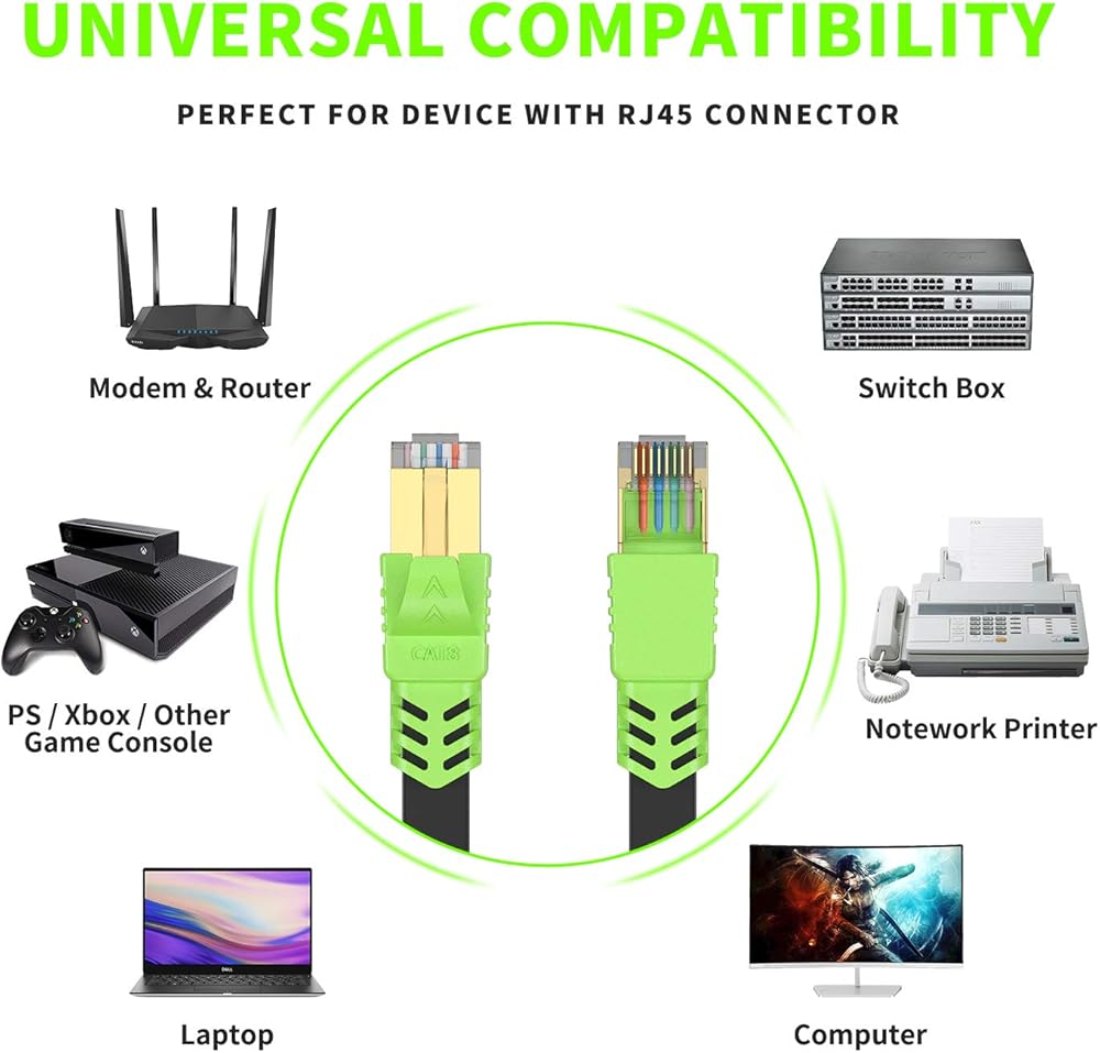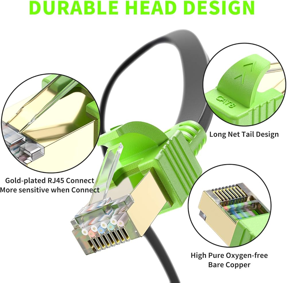 كابل إيثرنت CAT 8 بطول 65 قدمًا، كابل شبكة LAN مسطح عالي السرعة 26AWG تصحيح 40 جيجابت في الثانية، 2000 ميجا هرتز مع موصل RJ45 مطلي بالذهب لجهاز التوجيه والمودم والكمبيوتر الشخصي والمحولات والمحور والكمبيوتر المحمول والألعاب وXbox