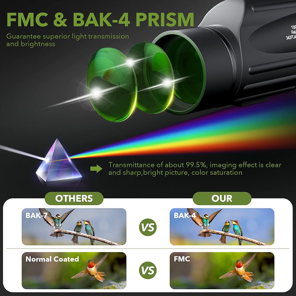 【عدسة BAK-4 PRISM & FMC 】مع منشور كريستال BAK-4 وعدسة بصرية غشاء خضراء FMC (متعددة الطبقات بالكامل)، نفاذية تصل إلى 99.2 بالمائة، تأثير التصوير واضح وحاد، صورة مشرقة، تشبع اللون باستخدام Porro نظام. ضمان نقل الضوء والسطوع الفائق.