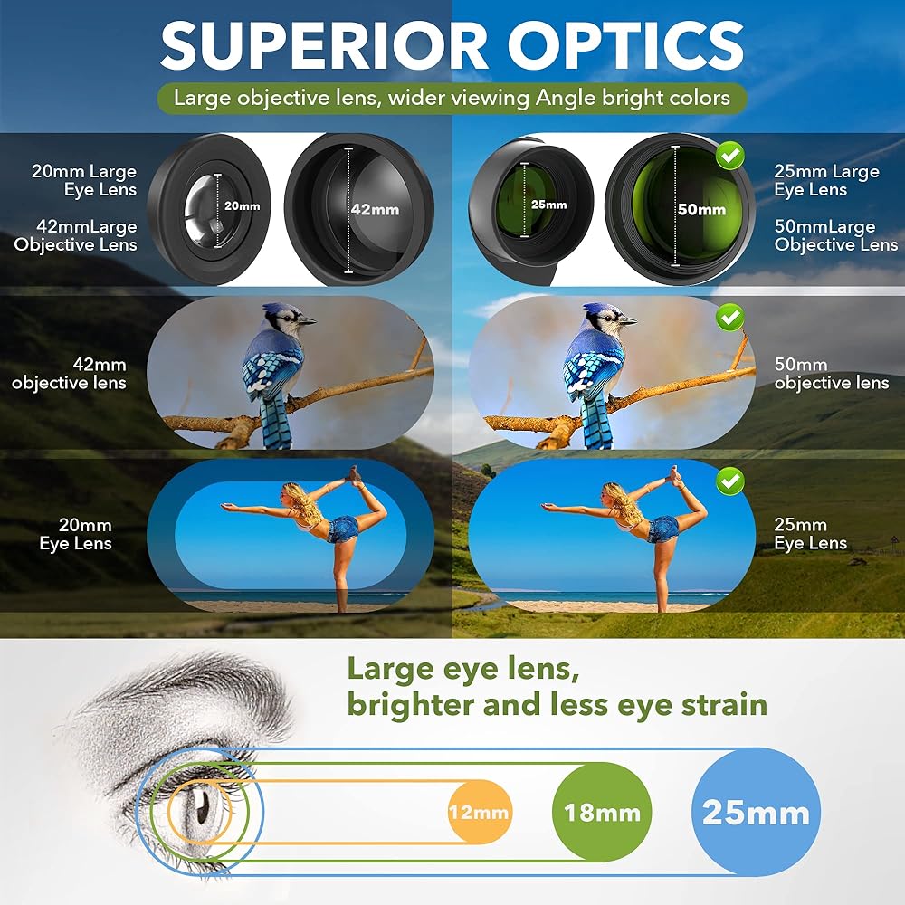 【مثالي للاستخدام في الهواء الطلق】نظام تكبير 13x يسهل تكبيره على الهدف، ملحقات مثالية مصممة لمشاهدة الطيور ومشاهدة القمر ومشاهدة النجوم والحياة البرية والمشي لمسافات طويلة والتخييم وصيد الأسماك والحفلات الموسيقية ورياضات الشاطئ والكرة. تمنحك تجربة بصرية مذهلة!