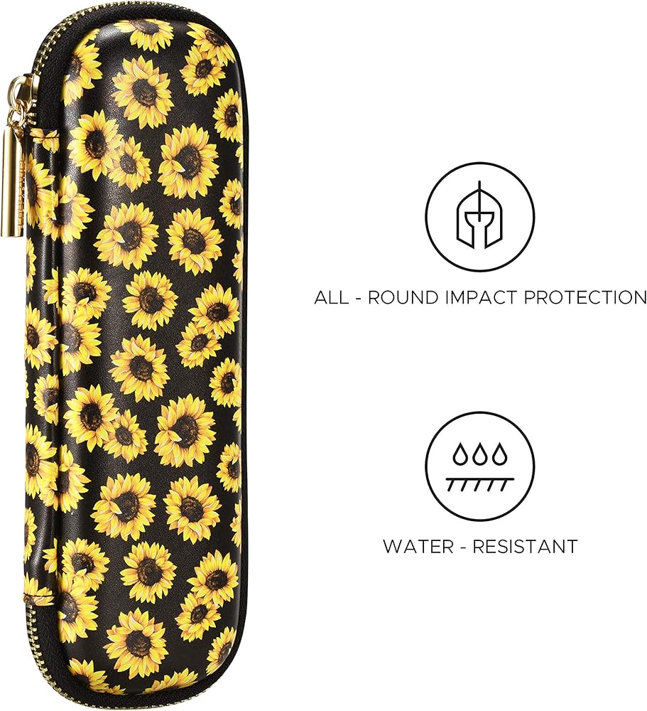 حافظة تخزين متينة بنمط عباد الشمس لقلم ابل وأقلام ستايلس الأخرى مصنوعة من مادة ايفا الواقية شبه الصلبة. تحمي أقلامك الذكية من الخدش أو التلطخ عند عدم استخدامها بينما تكون إكسسوارًا لطيفًا يناسب ذوقك. تتميز هذه الحافظة أيضًا بجيب شبكي مدمج بسحاب لتخزين رؤوس أقلام الرصاص الخاصة بك