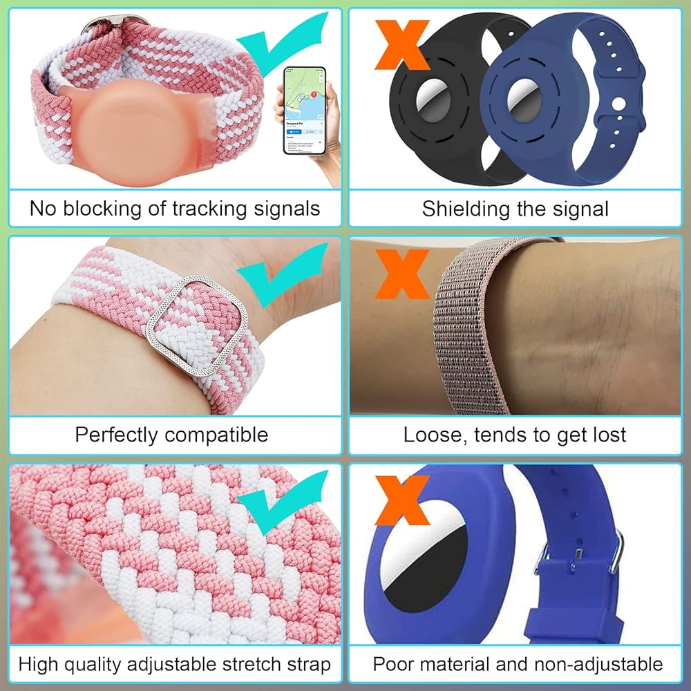 ✔ مادة صديقة للبشرة: مادة النايلون عالية الجودة مريحة جدًا عند اللمس، وخفيفة الوزن ومسامية، وستشعر براحة شديدة عند ارتداء سوار AirTag هذا.