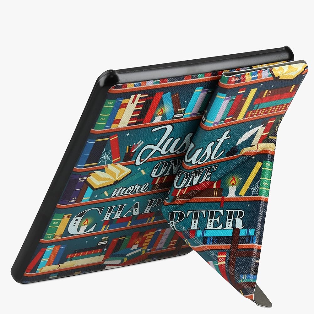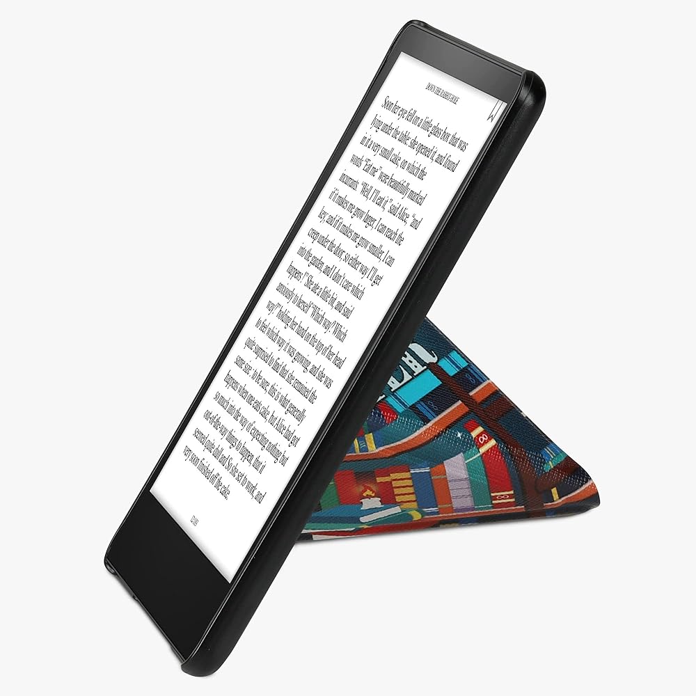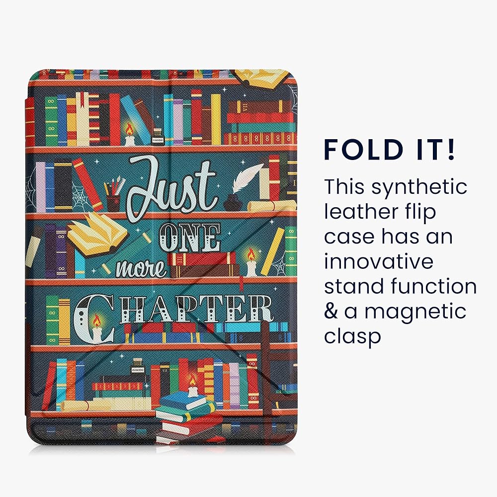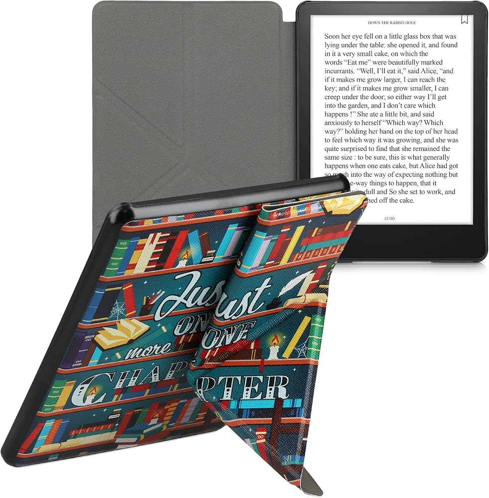 حافظة kwmobile Origami متوافقة مع Amazon Kindle Paperwhite 11. Generation 2021 - حافظة رفيعة بغطاء من جلد البولي يوريثان الفاخر مع حامل - شعار المكتبة متعدد الألوان