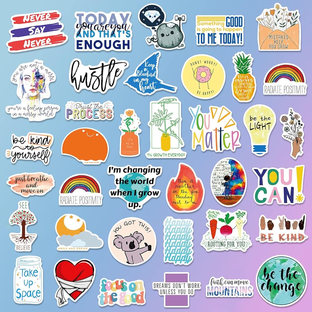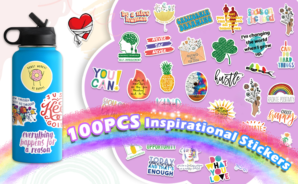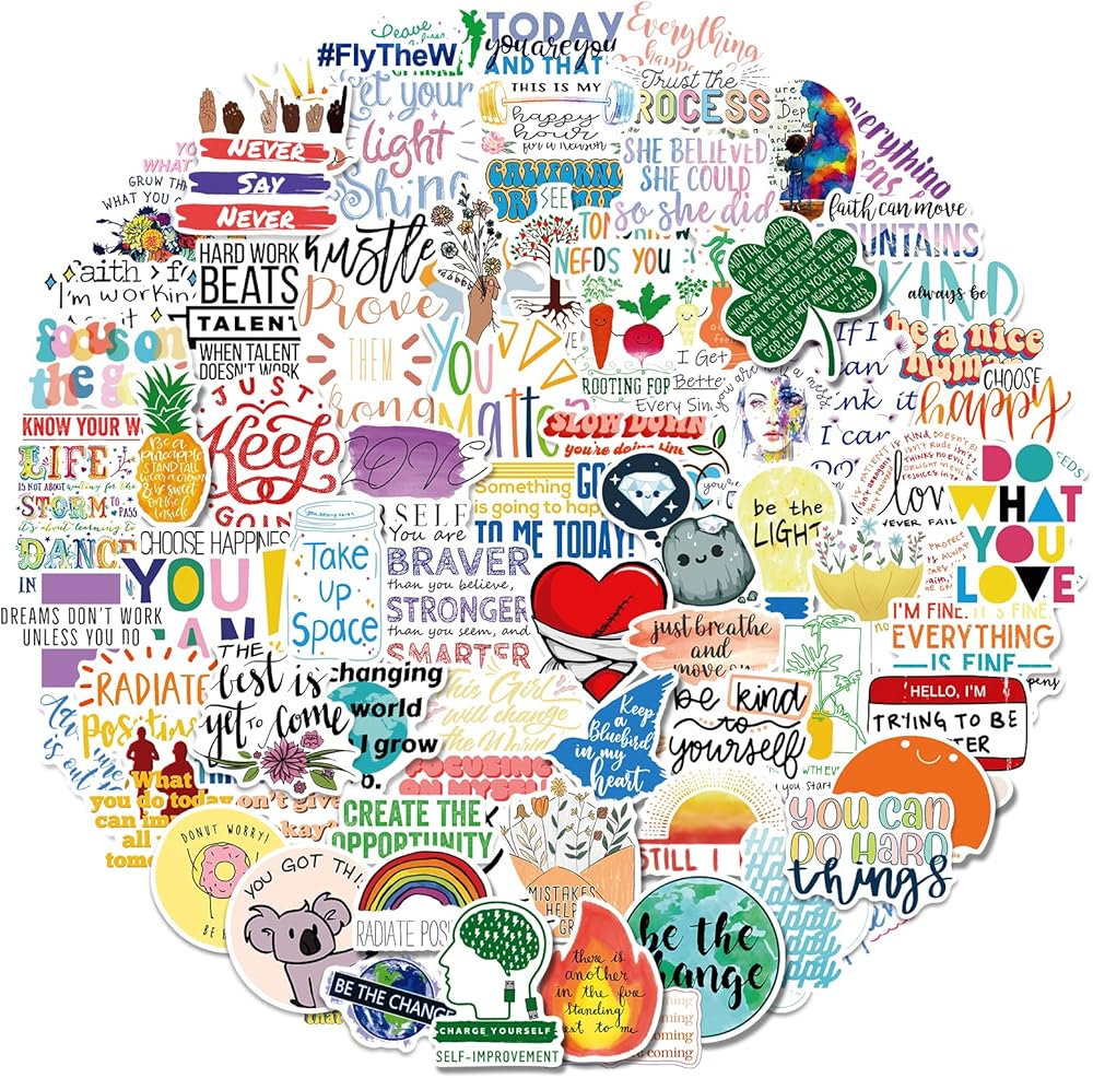 حزمة ملصقات ملهمة LIFEBE 100 قطعة، ملصقات اقتباسات إيجابية للكمبيوتر المحمول زجاجة مياه حاسوب محمول دفتر القصاصات دفتر القصاصات، كلمات تحفيزية ملصقات للمراهقين والبالغين وملصقات الصحة العقلية