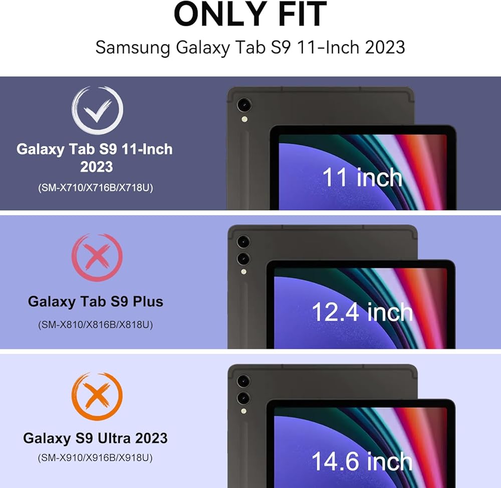 【متوافق مع 】 مصمم لجهاز Samsung Galaxy Tab S9 11 بوصة 2023 (SM-X710/X716B/X718U/X716N) ;Samsung Galaxy Tab S9 FE 5G 10.9 بوصة (موديل SM-X510/X516B/X518U) فقط. ملاحظة: لن يكون متوافقًا مع الأجهزة النموذجية الأخرى. يرجى التحقق من النموذج الخاص بك قبل الشراء.