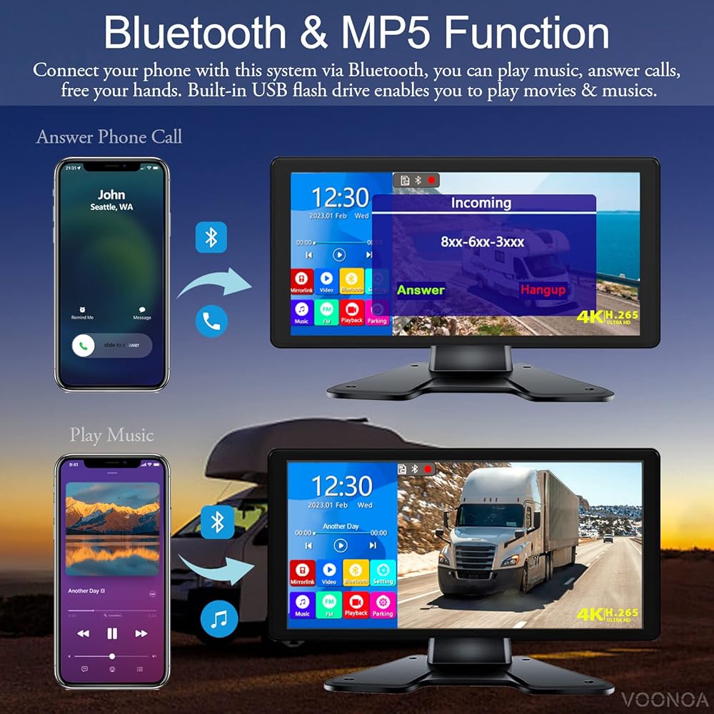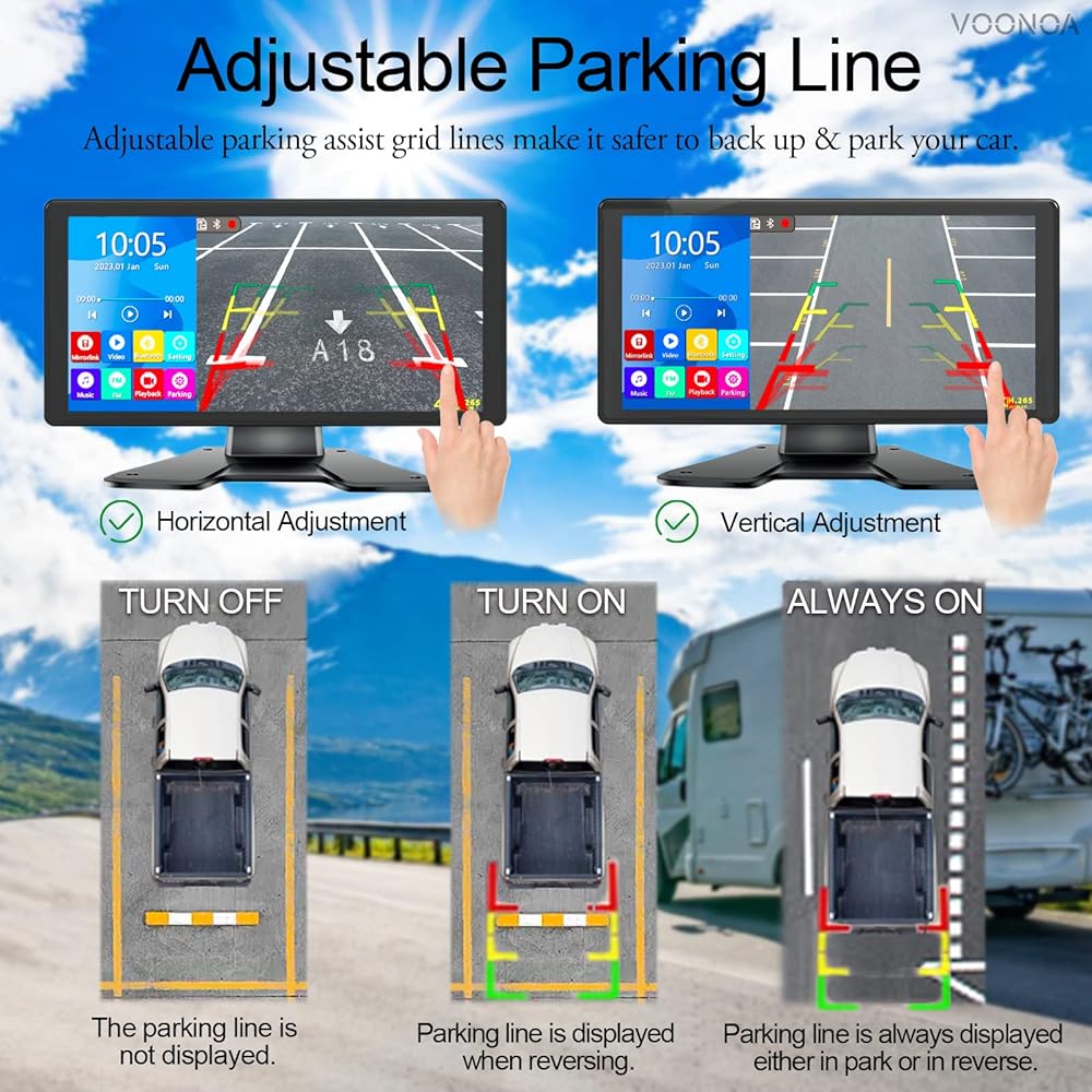 • 【بلوتوث مدمج】مع وظيفة البلوتوث، يتيح لك نظام كاميرا VOONOA RV توصيل هاتفك الخلوي iPhone بالشاشة لتشغيل الموسيقى والرد على المكالمات. حرر يديك وركز على القيادة وقلل من مخاطر القيادة.