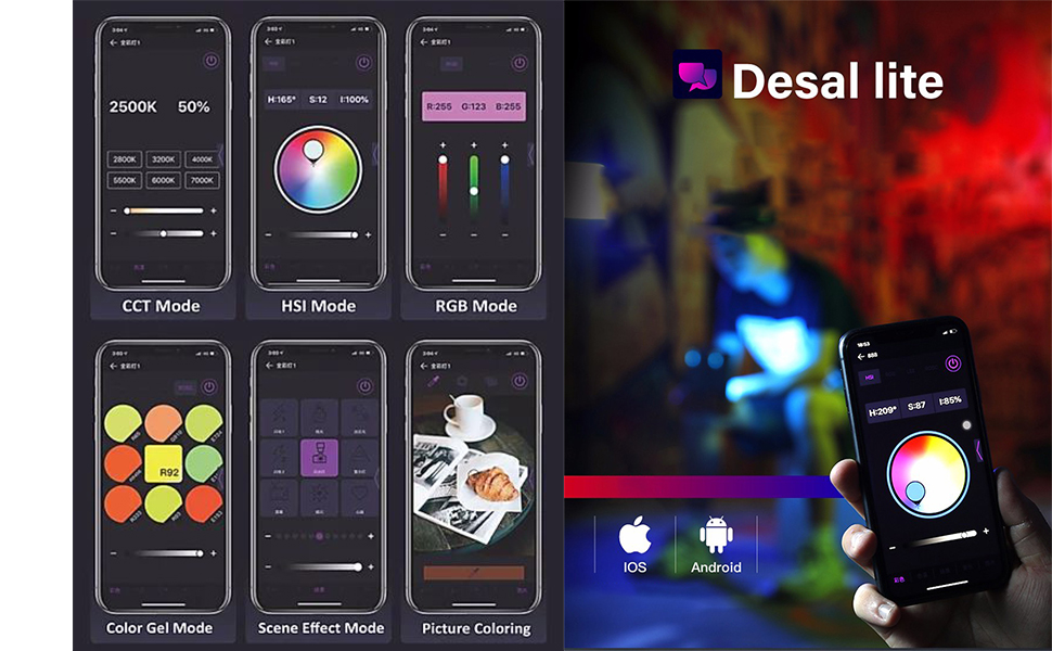 ملاحظة: عند استخدام الضوء، تحتاج إلى إزالة الغشاء الواقي الأزرق على الضوء قبل استخدامه. يأتي مع مغناطيس قوي، يمكن امتصاصه على سطح المعدن، بدون استخدام اليدين. 0-100 مستوى للتعتيم، 0-360 نوع من الألوان القابلة للتعديل، كل لون لديه 100 مستوى من التشبع والسطوع لضبط