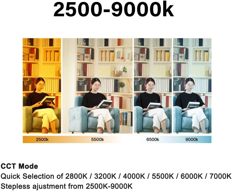 الحد الأقصى للطاقة 12 واط، الإضاءة 4900 لوكس مع مسافة 0.3 متر وCRI 96. نطاق درجة حرارة اللون القابل للتعديل هو 2500-9000 كلفن.