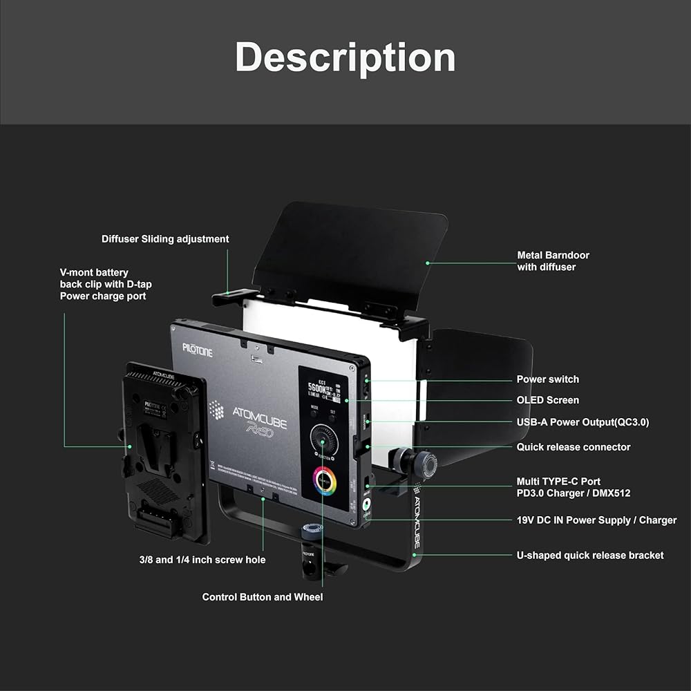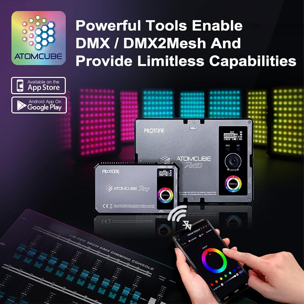 لوحة إضاءة LED محمولة AtomCUBE RX50 مقاس 10 بوصات RGBWW (الإصدار البلاتيني)