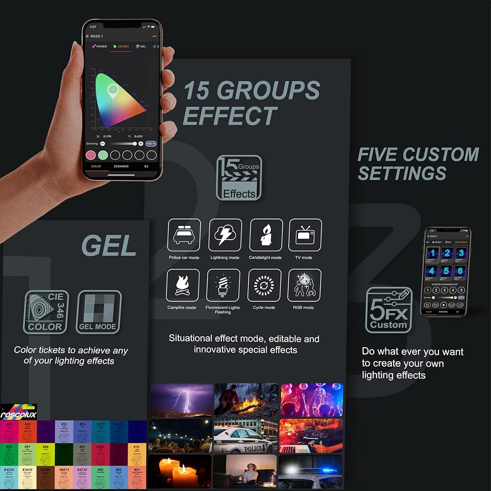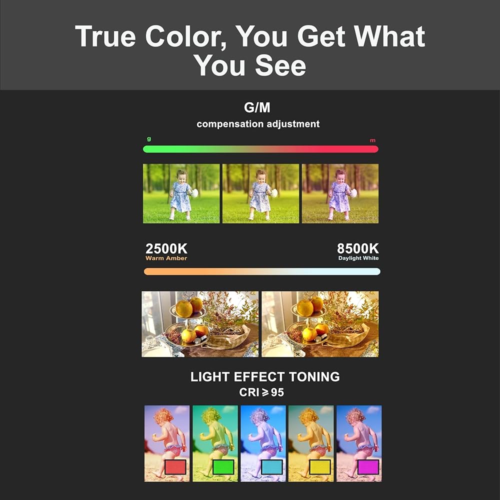 - لوحة LED RGBWW بقدرة 60 واط، 6150 لوكس عند 0.5 متر، 95 CRI/99 TLCI متسقة في جميع أنحاء الطيف تصميم نحيف وخفيف الوزن