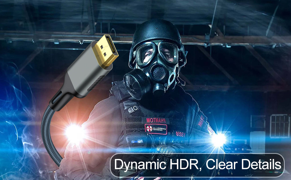 【Displayport Cable 240Hz】240Hz refresh rate let you enjoy the immersive entertainment and gaming experience. The 8K DP to DP Cable can provide higher bandwidth, HBR3 supports 32.4 Gbps of bandwidth, Maximize the performance of your graphics card and monitor. Dynamic HDR can optimize the game's dark picture and enhance the details, especially in FPS and 3A masterpieces.