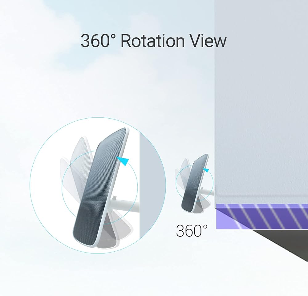 تركيب سهل ومرن: مع دعامة قابلة للتعديل تدور 360 درجة وكابل بطول 4 أمتار، توفر اللوحة الشمسية مرونة لا تصدق. قم بتركيب كاميرا الأمان الخاصة بك في المكان الذي تريده، ثم ابحث عن مكان مشمس لتثبيت اللوحة الشمسية.