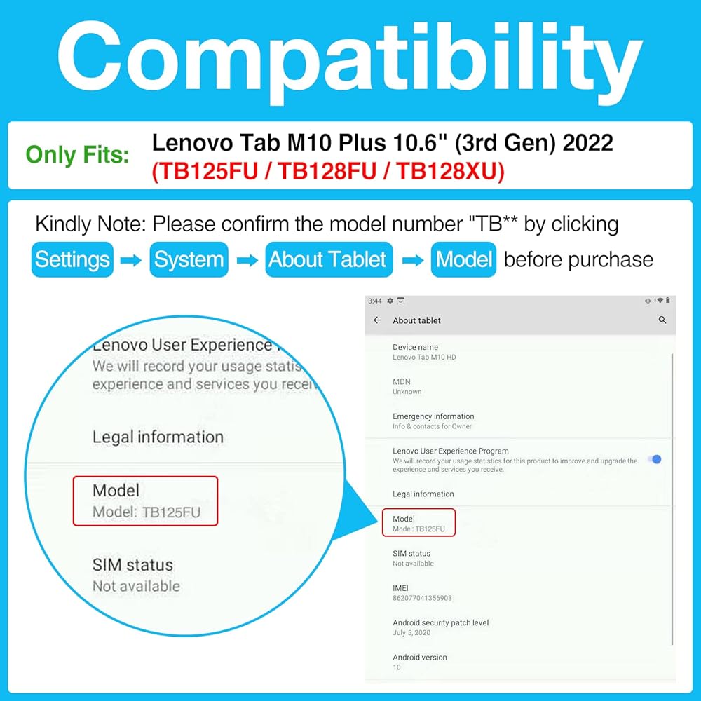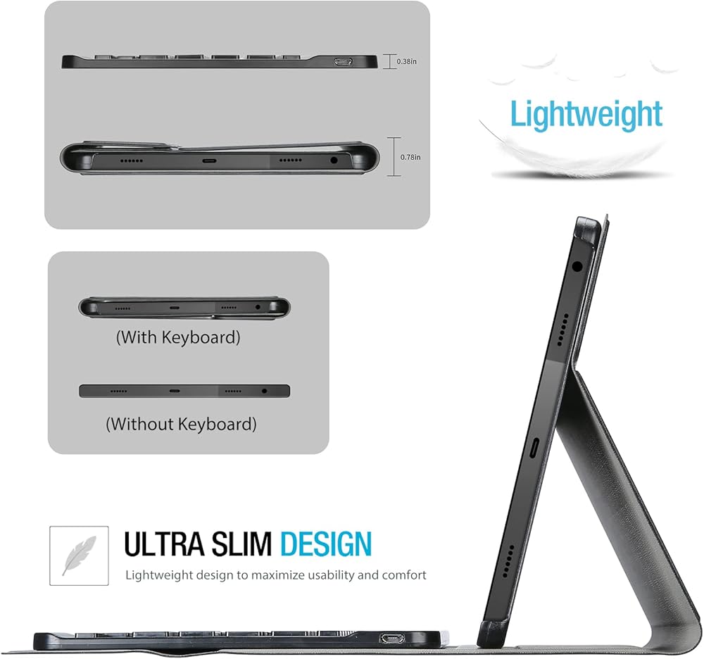 ✅ حافظة كيبورد لاسلكية رفيعة للغاية لجهاز لينوفو تاب M10 بلس الجيل الثالث 10.6 انش إصدار 2022 فقط (الموديل: TB125FU / TB128FU / TB128XU). غير متوافق مع أي أجهزة أخرى. يرجى التحقق من رقم الموديل قبل الشراء