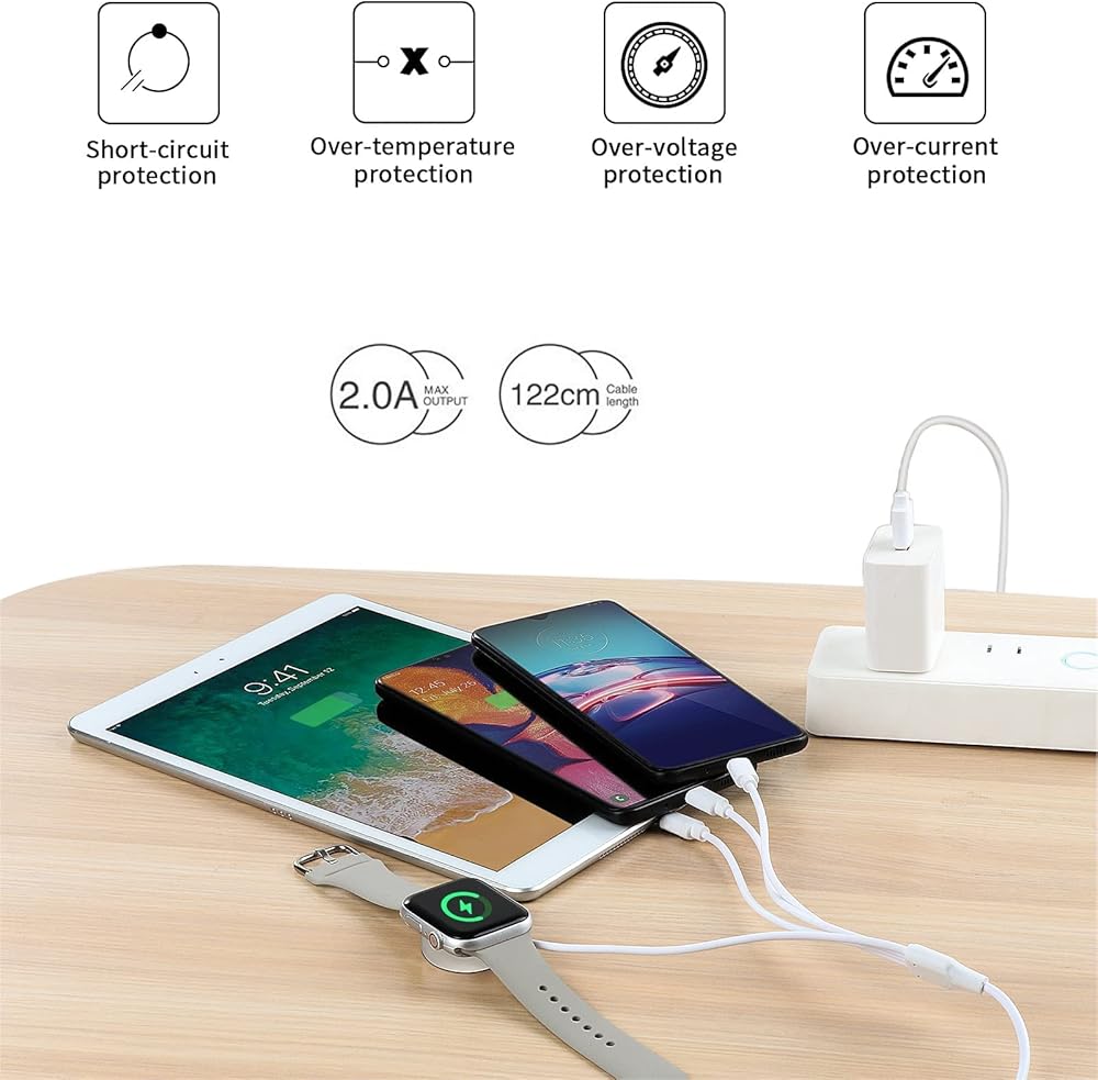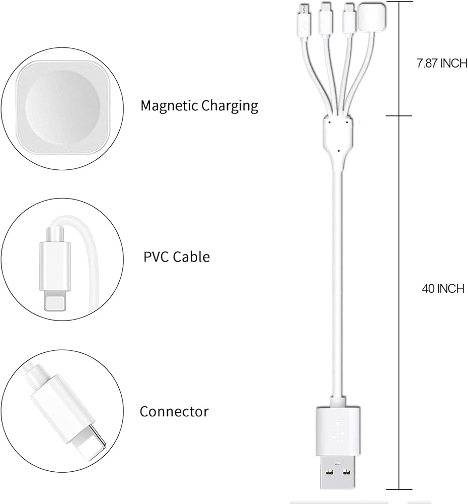 【شحن سريع وآمن】سلك شاحن الساعة 4 في 1 مصنوع من مواد عالية الجودة لتحسين سرعة الشحن ونقل البيانات، مما يضمن شحنًا فائق السرعة دون التعرض لخطر ارتفاع درجة الحرارة. يمكنك تقديمه لأصدقائك وعائلتك كهدايا للكريسماس وأعياد الميلاد.