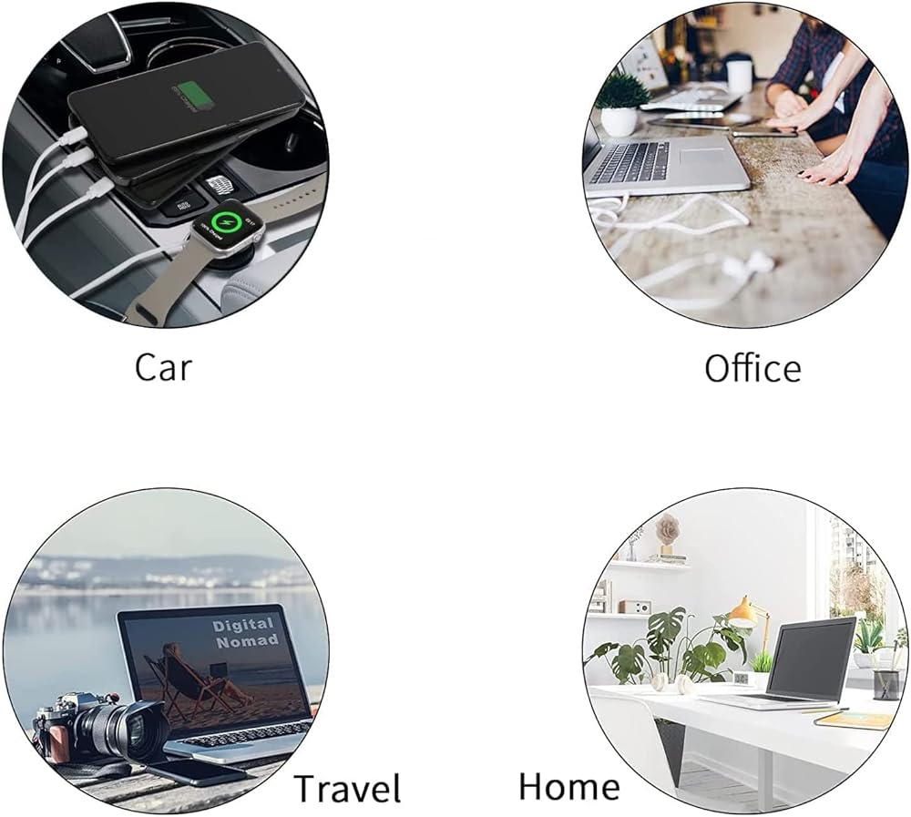 【تصميم محمول】الشاحن مناسب لشحن الساعة/الهاتف/الوسادة في نفس الوقت. طول 4 أقدام محمول للسفر، يمكن وضعه في جيبك أو حقيبتك.