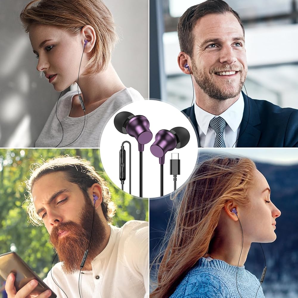 سماعات أذن USB C سلكية لهاتف iPhone 15 Pro Samsung S23 FE مغناطيسية داخل الأذن بخاصية إلغاء الضوضاء من النوع C وميكروفون للتحكم في مستوى الصوت لـ Google Pixel 8 Pro iPad Air Galaxy Z Flip Fold 5 S23 Ultra