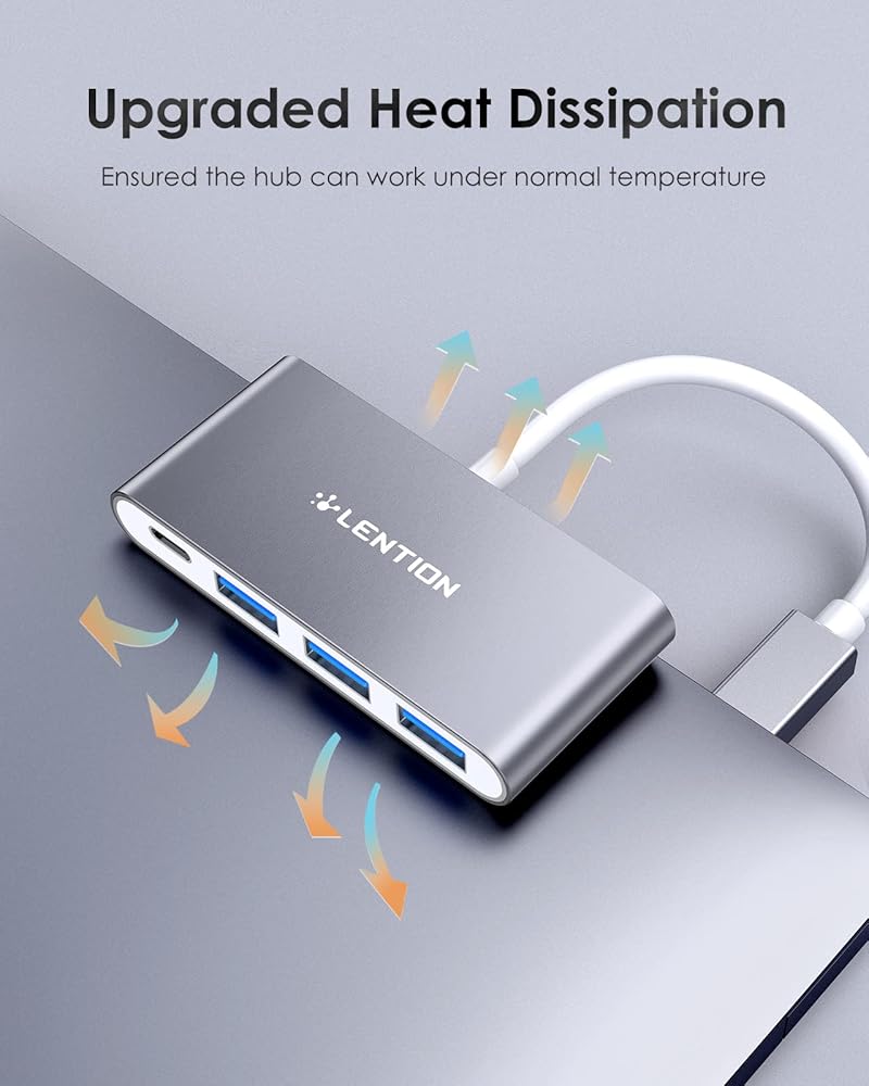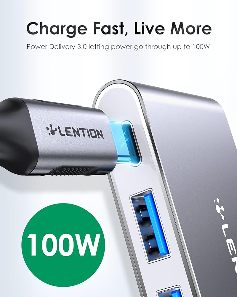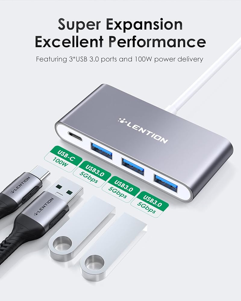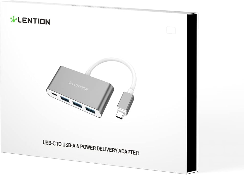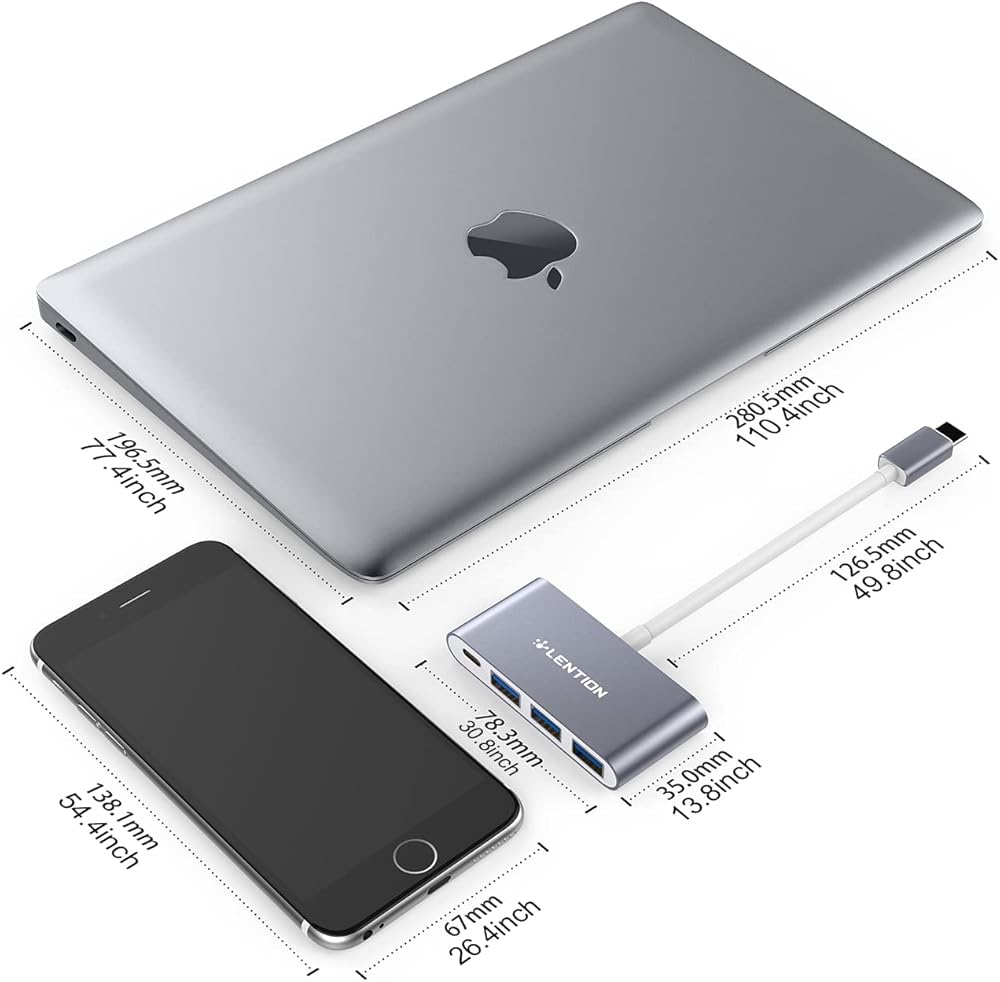 موزع LENTION 4 في 1 USB-C مع 3 منافذ USB 3.0 ونوع C لتوصيل الطاقة متوافق مع 2023-2016 MacBook Pro 13/14/15/16، Mac Air/Surface الجديد، ChromeBook، المزيد، محول شحن متعدد المنافذ (CB-C13se) ، فضاء رمادي)