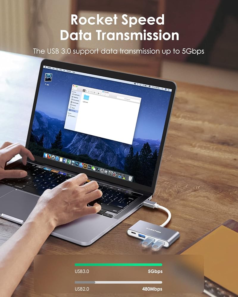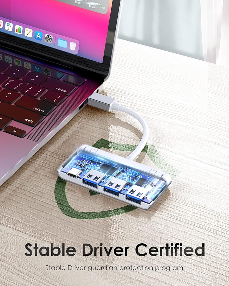 • التوصيل والتشغيل: لا يتطلب أي مشغلات خارجية أو طاقة، وهو مصمم للاستخدام مع الأجهزة المحمولة مثل لوحات المفاتيح السلكية، ومحركات أقراص فلاش USB، والأقراص الخارجية 2.5 مم، وما إلى ذلك. نظرًا لحد إمداد الطاقة للكمبيوتر المحمول، قد تكون بعض الأجهزة عالية الطاقة لا يتم تشغيله، مثل القرص الخارجي مقاس 3.5 مم، والطابعة، وما إلى ذلك. غير مصمم للاستخدام مع SuperDrive