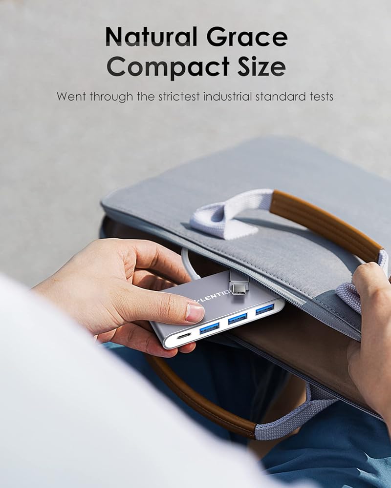 • إصدار الترقية: يحتوي على منفذ توصيل طاقة من النوع C، وثلاثة منافذ USB 3.0، متصلة بمنفذ إخراج من النوع C، مما يوفر سرعة نقل بيانات عالية تصل إلى 5 جيجابت في الثانية؛ خفيفة الوزن وحجم مناسب لحملها في حقيبة الكمبيوتر المحمول الخاصة بك عند السفر