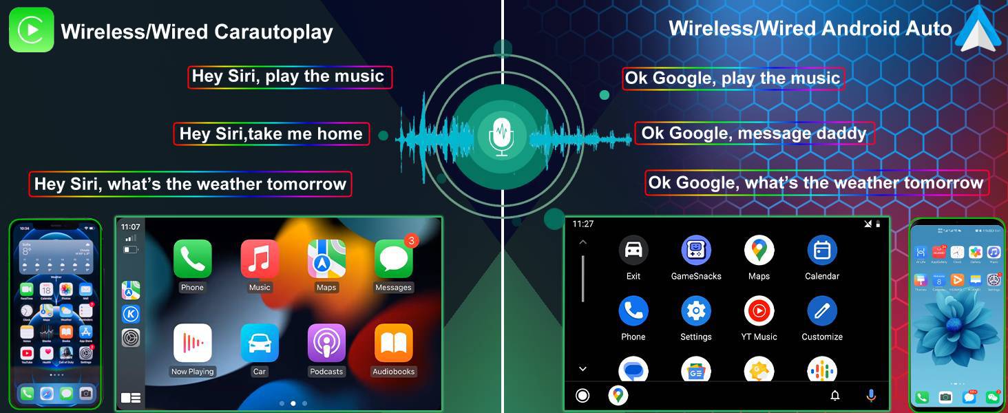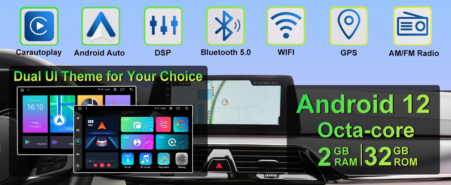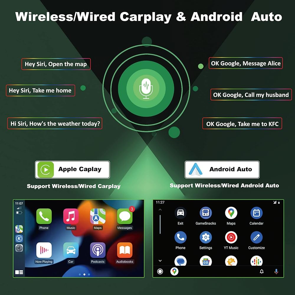 🚗【Wireless/Wired Car Play & Wireless/Wired Android Auto】The Android car Radio with built-in Wireless/Wired Carplay and Wireless/Wired Android Auto, you could connect the Android car stereo to your iPhone or Android phone via Bluetooth or USB cable, and directly access the apps on your phone, which brings you to enjoy GPS navigation, music software, calls, message, and other functions when focusing on road safety