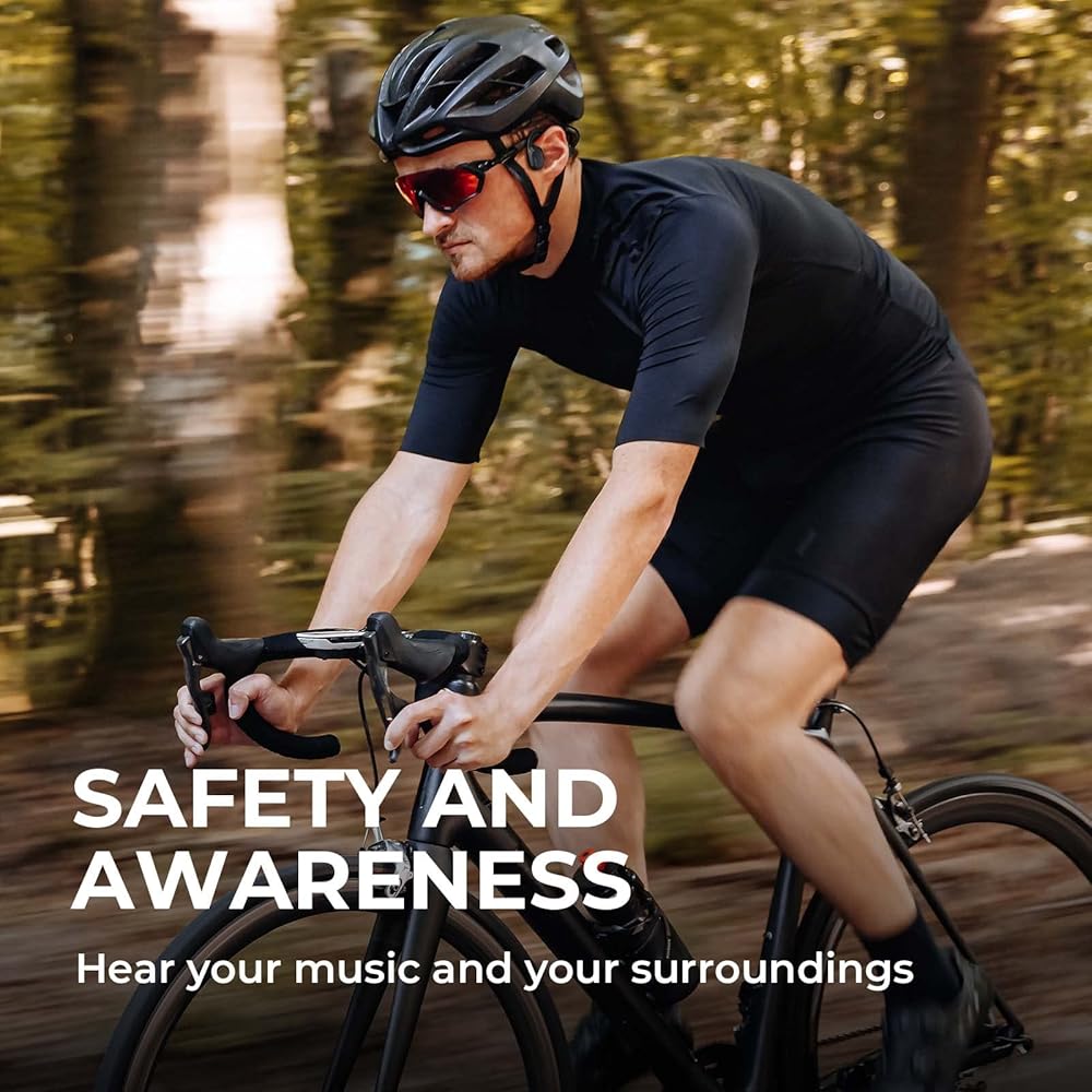 【راحة الأذن المفتوحة】سماعات الرأس بلوتوث يمكنها أن تجعلك تسمع ما يدور حولك، مما يبقيك على اتصال ووعيًا بالبيئة المحيطة بك. إنها أكثر أمانًا من سماعات الأذن التقليدية وسماعات الرأس. مريحة على النظارات أو تحت الخوذة ونحيفة وخفيفة الوزن يزيد وزنها عن 1 أونصة لراحة طوال اليوم
