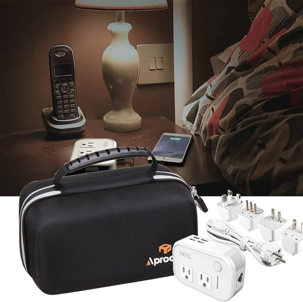 Aproca حافظة سفر للتخزين الصلب لمحول السفر الدولي ALLWEI 220 فولت إلى 110 فولت تنحى محول جهد كهربائي