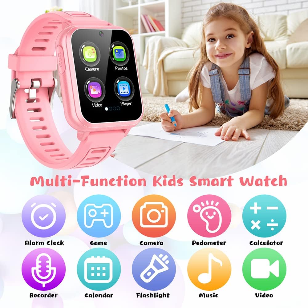 🕹️【ساعات ذكية متعددة الوظائف للأطفال】 شاشة لمس ملونة عالية الدقة مقاس 1.54 بوصة، بطارية ذات سعة كبيرة 400 مللي أمبير في الساعة، بطاقة Micro SD مدمجة، 24 لعبة، عداد الخطى، 3 ساعات منبه، آلة حاسبة، فيديو، مشغل MP3، مسجل، كاميرا عالية الدقة، خمس ساعات قابلة للتعديل اللغات، ساعة اليد