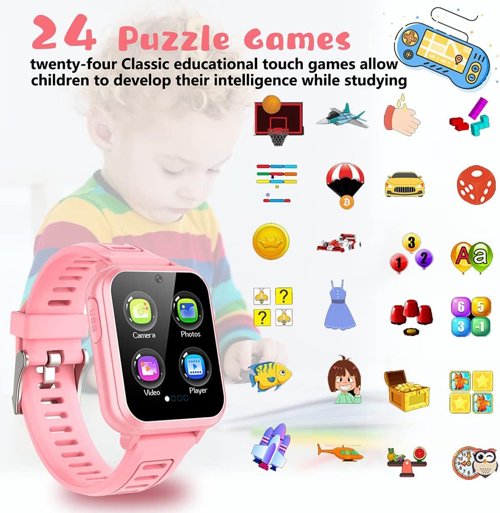 🎮【24 لعبة ألغاز 】 24 لعبة ألغاز، ساعة ذكية للأطفال يمكن للأطفال اللعب من خلال اختيار اللعبة التي يفضلونها، والتي يمكن أن تنمي ذكاء الأطفال وتمرين قدرة رد الفعل لدى الأطفال والقدرة على التفكير، وتحفيز فضول الأطفال، والسماح للأطفال بالنمو أثناء اللعب. إنها وحدة تحكم ألعاب يحبها الأطفال