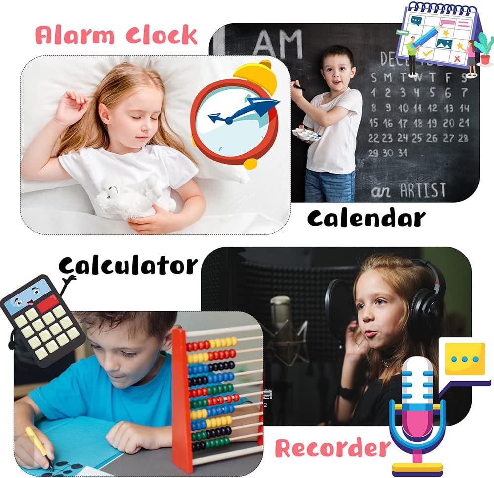 💕【الكاميرا والفيديو والموسيقى】 تدعم الفيديو والموسيقى والصور والمسجل ومسجل الفيديو. تحتوي هذه الكاميرا على 10 إطارات للصور. يمكن للأطفال وضع صورهم فيه والحصول على صور جميلة. يمكن حفظ الصور والصوت والفيديو المسجل على بطاقة SD الصغيرة المدمجة. يمكنك أيضًا تنزيل ملفات الفيديو والموسيقى من الكمبيوتر عبر كابل USB وحفظها في بطاقة micro SD المدمجة في الساعة الذكية.