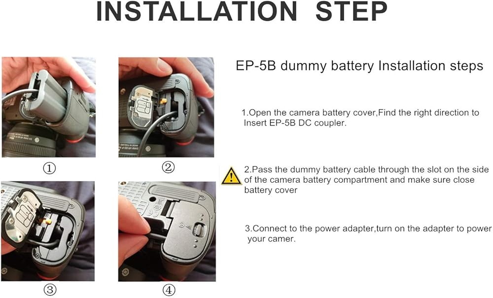 • ستحل مجموعة محول الطاقة للبطارية الدمية الخارجية EP-5B محل بطارية EN-EL15 لتزويد كاميرا باناسونيك الخاصة بك بمصدر طاقة غير منقطع عن طريق تغيير التيار الكهربائي. ويمكنك التركيز على التصوير دون الانزعاج بسبب القلق بشأن نفاد طاقة البطارية.