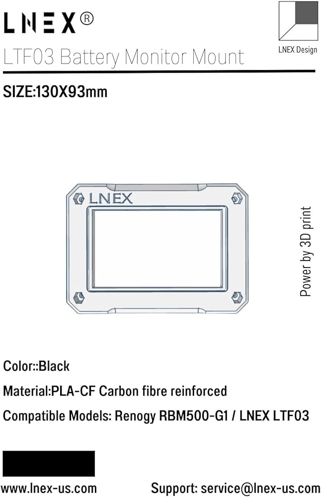 حامل شاشة بطارية LNEX، صندوق تثبيت سطحي مطبوع ثلاثي الأبعاد من ألياف الكربون لمراقبة بطارية Renogy
