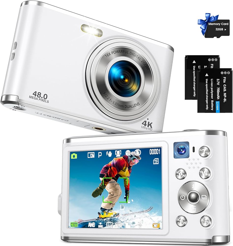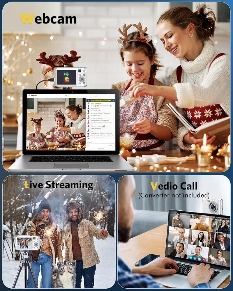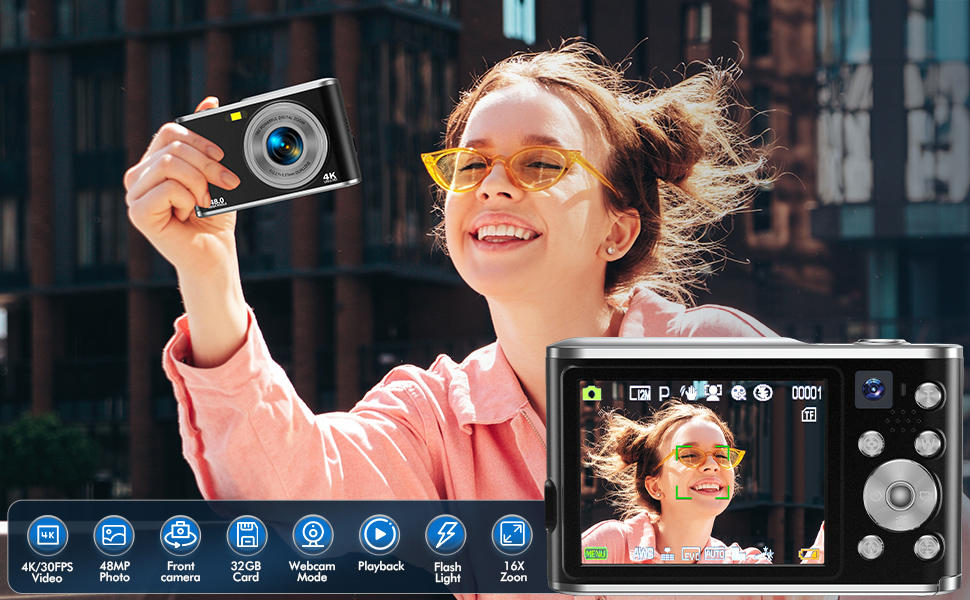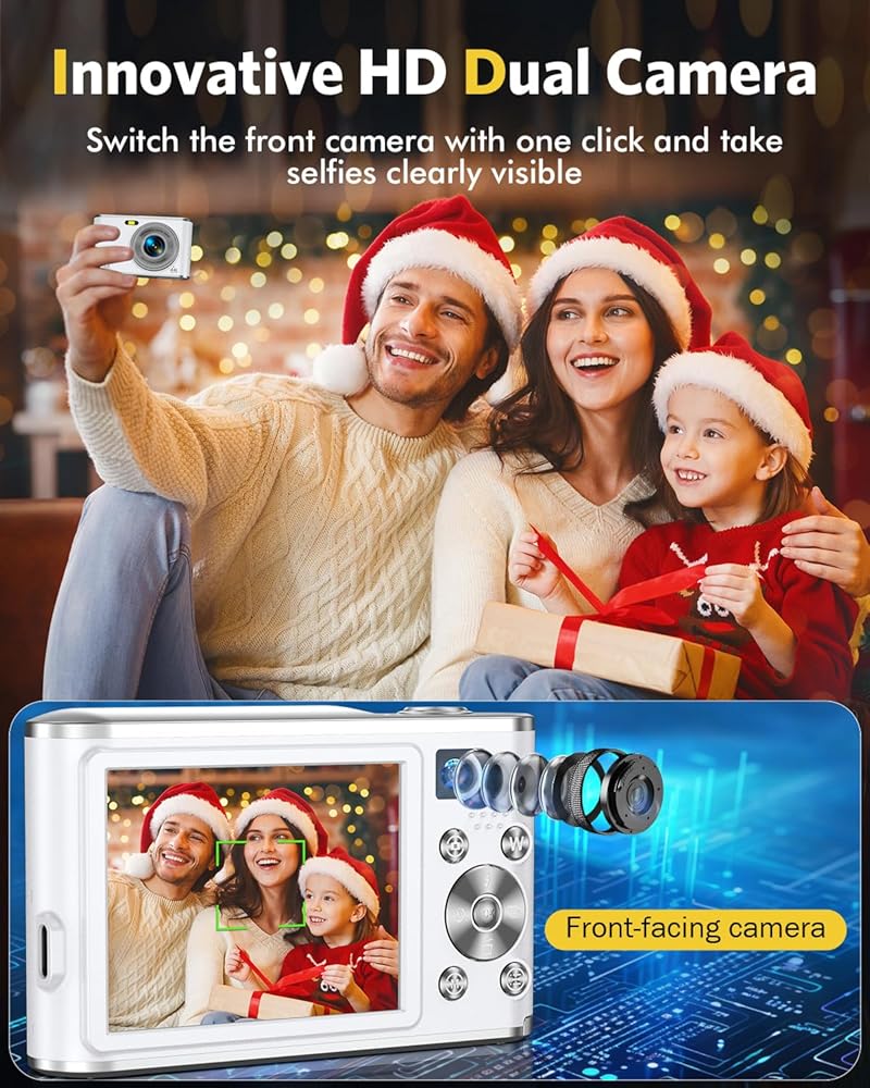 📸[كاميرا مزدوجة للتركيز البؤري التلقائي] - تصميم مبتكر للكاميرا المزدوجة! قم بالتبديل إلى الكاميرا الأمامية للحصول على صور سيلفي سهلة بنقرة واحدة فقط، واستخدم الكاميرا الخلفية للحصول على فيديو إبداعي، وفتح مهارات التصوير المختلفة بسهولة. تدعم الكاميرا الرقمية المدمجة وظيفة التركيز القوية لضمان التركيز الدقيق للعدسات الأمامية والخلفية، مما يسمح لك لالتقاط لحظات واضحة ورائعة بسهولة. الكاميرا الرقمية ذات التركيز التلقائي بدقة 4K مثالية كهدية لعيد الميلاد أو عيد الميلاد!
