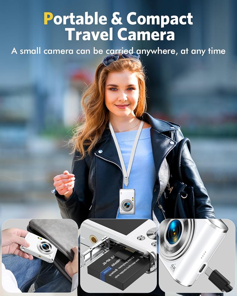 📸[شاشة IPS مقاس 2.8 بوصة وكاميرا محمولة] - الكاميرا الرقمية للسفر أصغر وأخف وزنًا من الهاتف المحمول ويمكن وضعها بسهولة في جيبك. كاميرا رقمية صغيرة بشاشة IPS مقاس 2.8 بوصة مزودة ببطاريتين بسعة كبيرة 700 مللي أمبير مع بطارية أطول الحياة، مما يسمح لك باستبدال البطاريات في أي وقت لمواصلة التصوير.هذه الكاميرا الرقمية الصغيرة المحمولة مثالية لتسجيل اللحظات السعيدة مع الأصدقاء وأفراد الأسرة، في الداخل/الخارج.