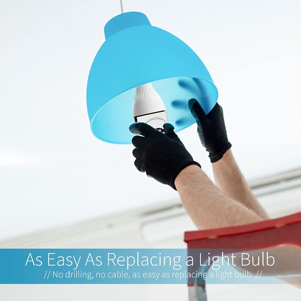 سهولة التثبيت وإعدادات Wi-Fi - إنها سهلة مثل استبدال المصباح الكهربائي لتثبيت هذه الكاميرا على مقبس الإضاءة E27، وإعداد Wi-Fi لمدة دقيقتين بسرعة 2.4 جيجا هرتز!