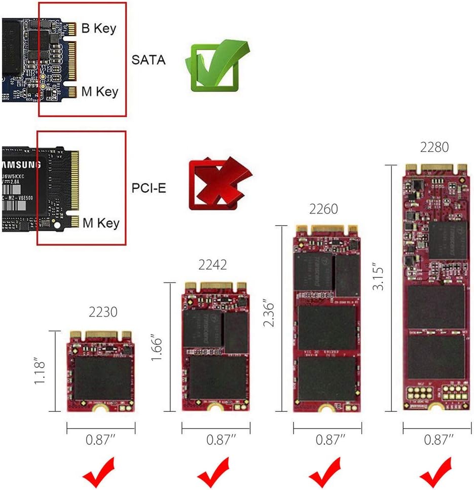 يدعم جميع الأحجام 22*30/22*42/22*60/22*80 ملم M.2 NGFF(SATA) SSD، لا يدعم مفتاح B القائم على منفذ الملحقات الإضافية السريع وأي مفتاح ام M.2 SSD