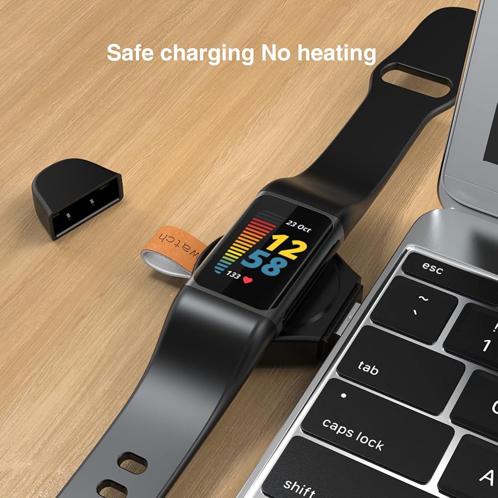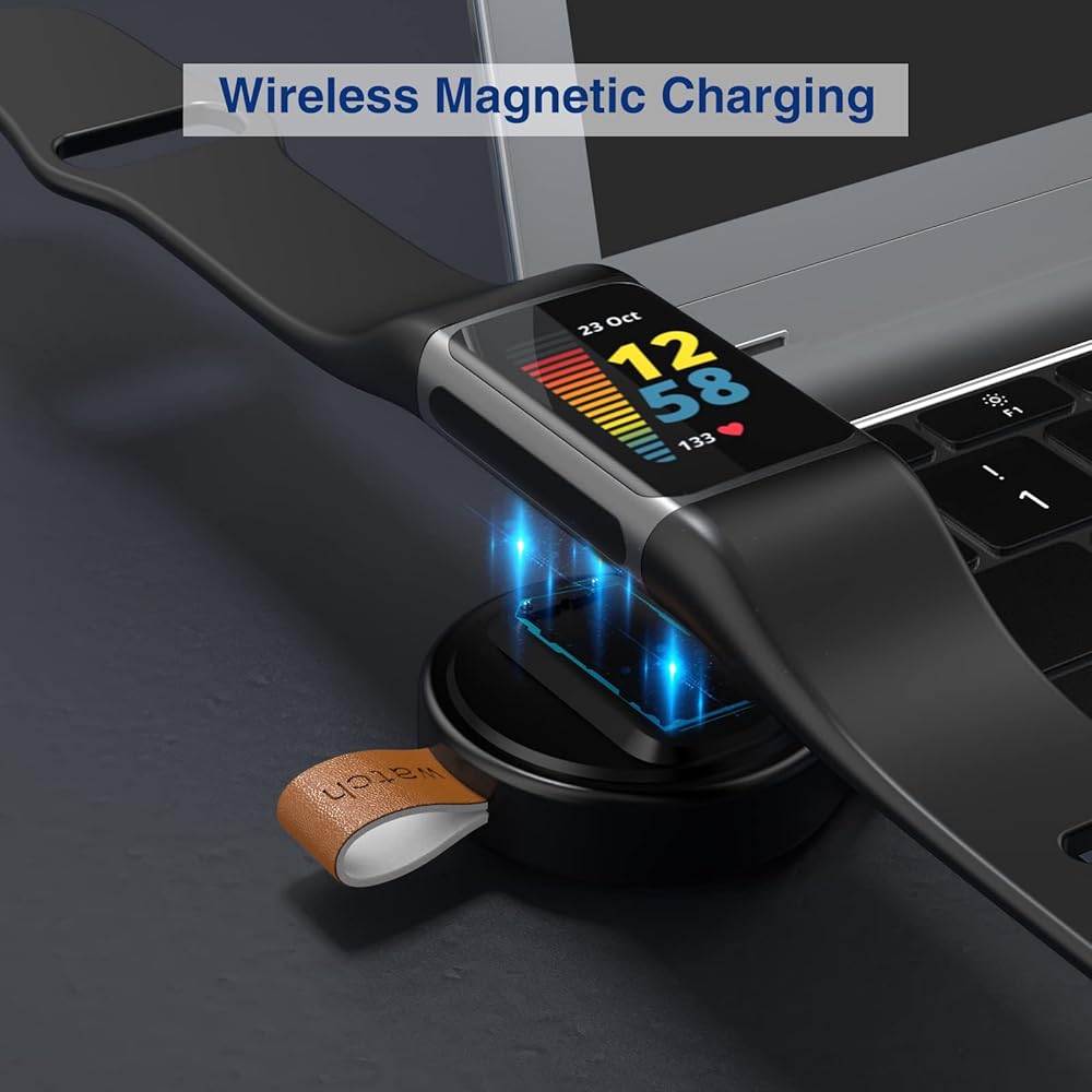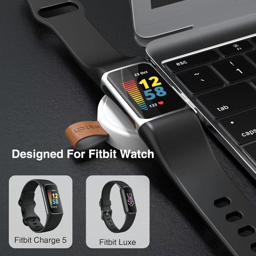 شاحن لاسلكي محمول لساعة فيتبيت، يشحن جهاز Fitbit Charge 6/5/fitbit luxe الخاص بك بالكامل خلال ساعة واحدة بنفس سرعة الشاحن الأصلي.