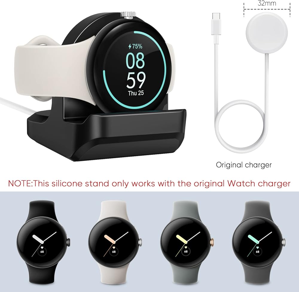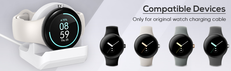 توافق واسع: مصمم خصيصًا لساعة Google Pixel الذكية والشاحن الرسمي، وغير متوافق مع أي موديلات أخرى. يرجى استخدام الشاحن الرسمي، ولا يناسب أي شواحن خارجية (يرجى ملاحظة: الساعة والشاحن غير متضمنين)