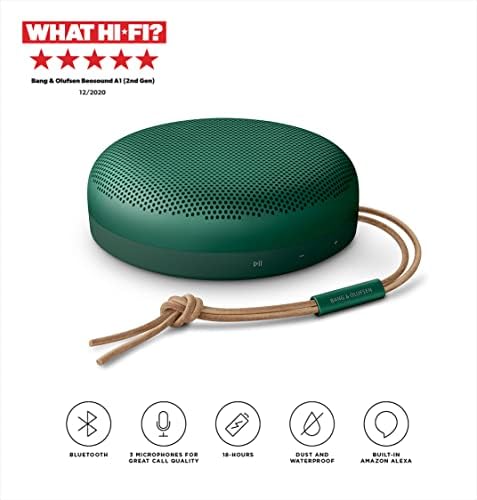 Bang & Olufsen Beosound Explore - مكبر صوت بلوتوث لاسلكي محمول خارجي، IP 67 مقاوم للغبار ومقاوم للماء، أخضر & Beosound A1 الجيل الثاني مكبر صوت بلوتوث لاسلكي محمول مقاوم للماء، أخضر