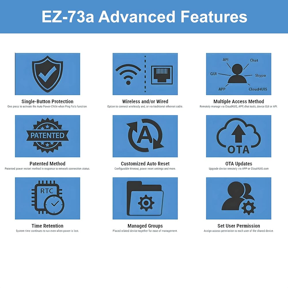 - إعادة تشغيل الأجهزة البعيدة تلقائيًا مثل أجهزة المودم أو أجهزة التوجيه أو أجهزة الكمبيوتر أو كاميرات الأمان عند تعطلها أو تجميدها أو قفلها