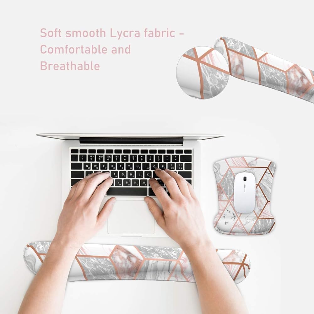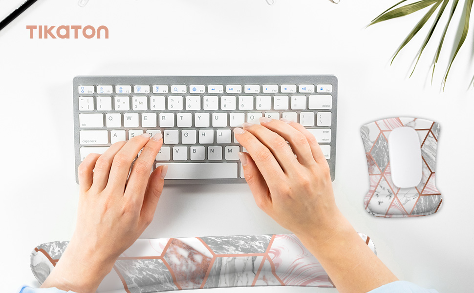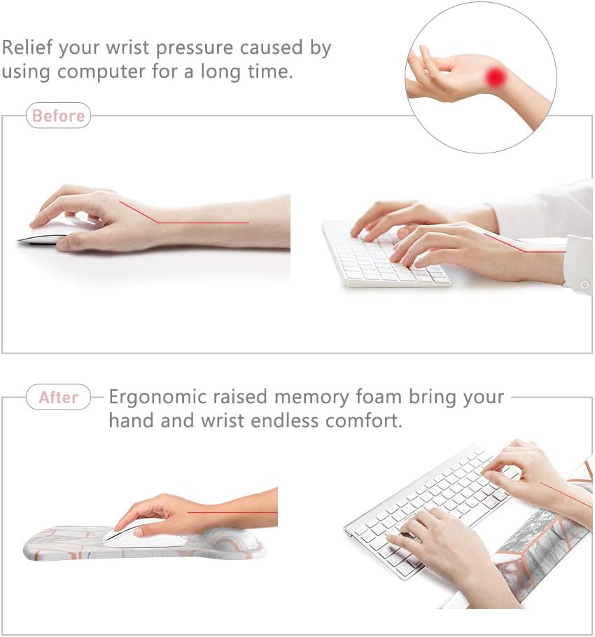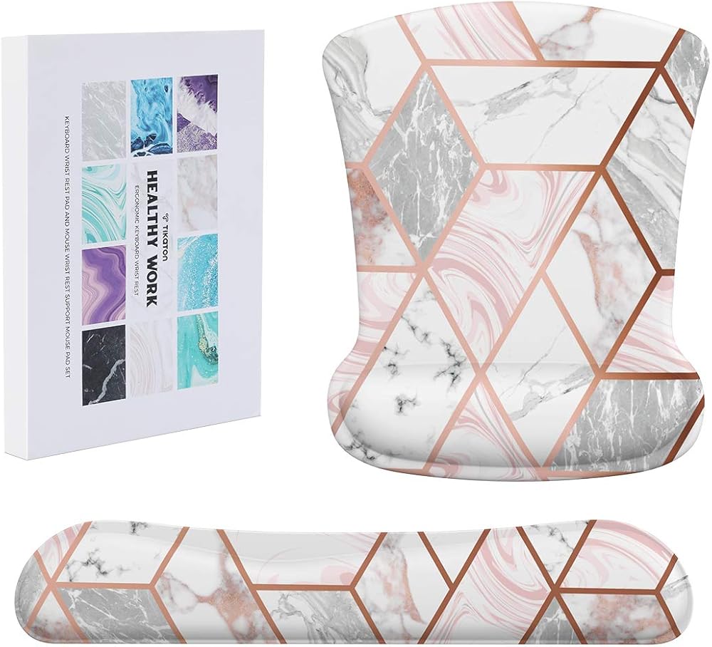 وسادة مسند المعصم للوحة المفاتيح من Tikaton ومجموعة مسند المعصم لدعم مسند الماوس، قاعدة مطاطية غير قابلة للانزلاق لدعم المعصم مع رغوة الذاكرة المرتفعة المريحة لسهولة الكتابة وتخفيف الألم (رخام)