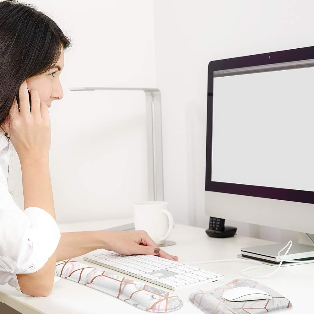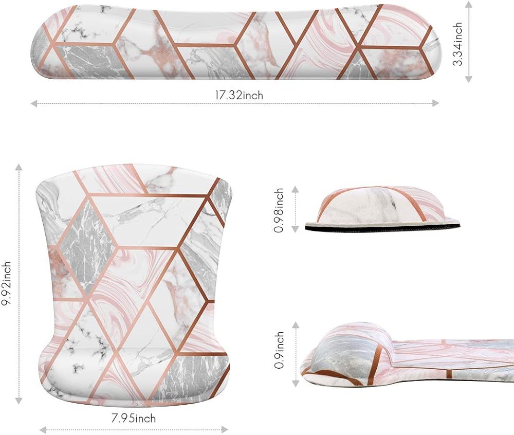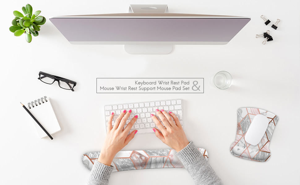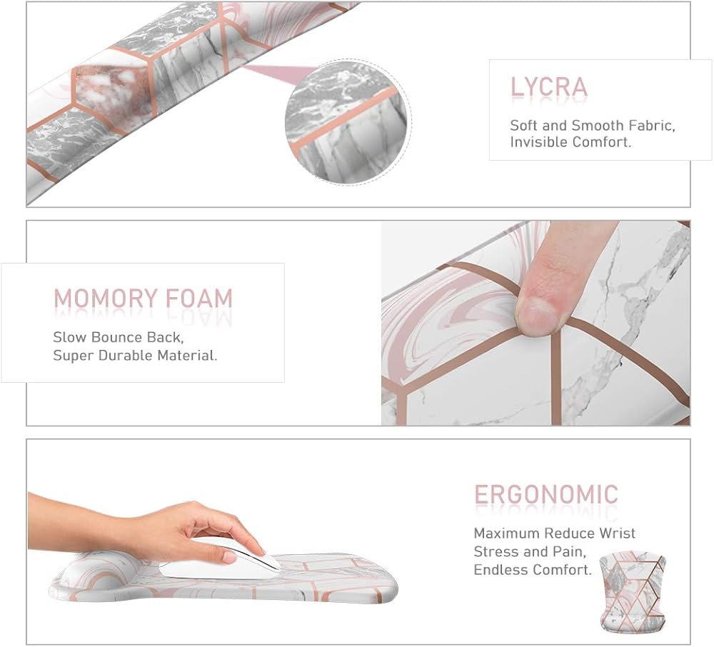 وسادة مسند المعصم للوحة المفاتيح من Tikaton ومجموعة مسند المعصم لدعم مسند الماوس، قاعدة مطاطية غير قابلة للانزلاق لدعم المعصم مع رغوة الذاكرة المرتفعة المريحة لسهولة الكتابة وتخفيف الألم (رخام)