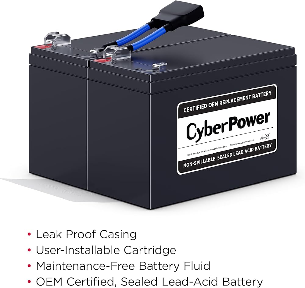 The RB1290X2A UPS Replacement Battery Cartridge restores life to CyberPower UPS systems that have weak or completely depleted internal batteries. The RB1290X2A contains two 12V/9Ah batteries, certified to meet or exceed original manufacturer specifications. This leak-proof, sealed lead-acid battery never requires replacement fluid. The batteries install easily into your CyberPower UPS system and are shipped with reusable packaging for delivering expired batteries to a suitable recycling center. The RB1290X2A comes with instructions, recycling information, and an eighteen-month warranty. UPS Compatibility OR1000PFCLCD