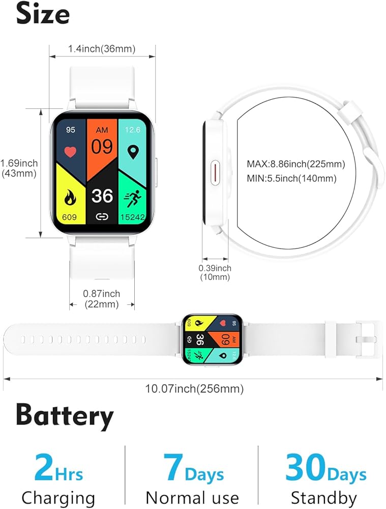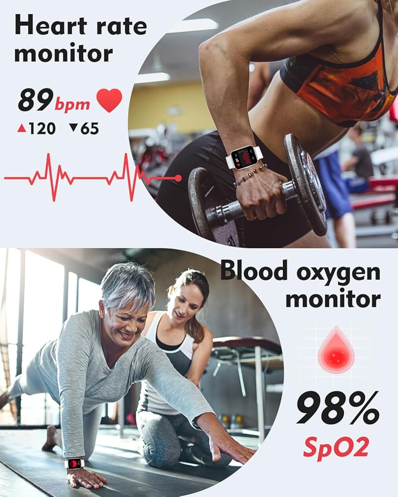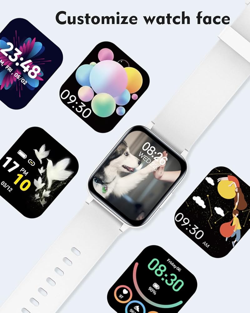 ★ [شاشة لمس عالية الدقة مقاس 1.7 بوصة ووجوه ساعة مخصصة] شاشة ملونة كبيرة مقاس 1.7 بوصة وشاشة لمس كاملة تضمن التشغيل السلس. دقة 240*240 تمنحك تشبعًا أفضل للألوان وإعادة إنتاجها. تخصيص ساعتك الذكية باستخدام وجوه الساعة المتعددة المتوفرة في التطبيق أو بصورك الخاصة، تجعل ساعتك أنيقة وفريدة من نوعها.
