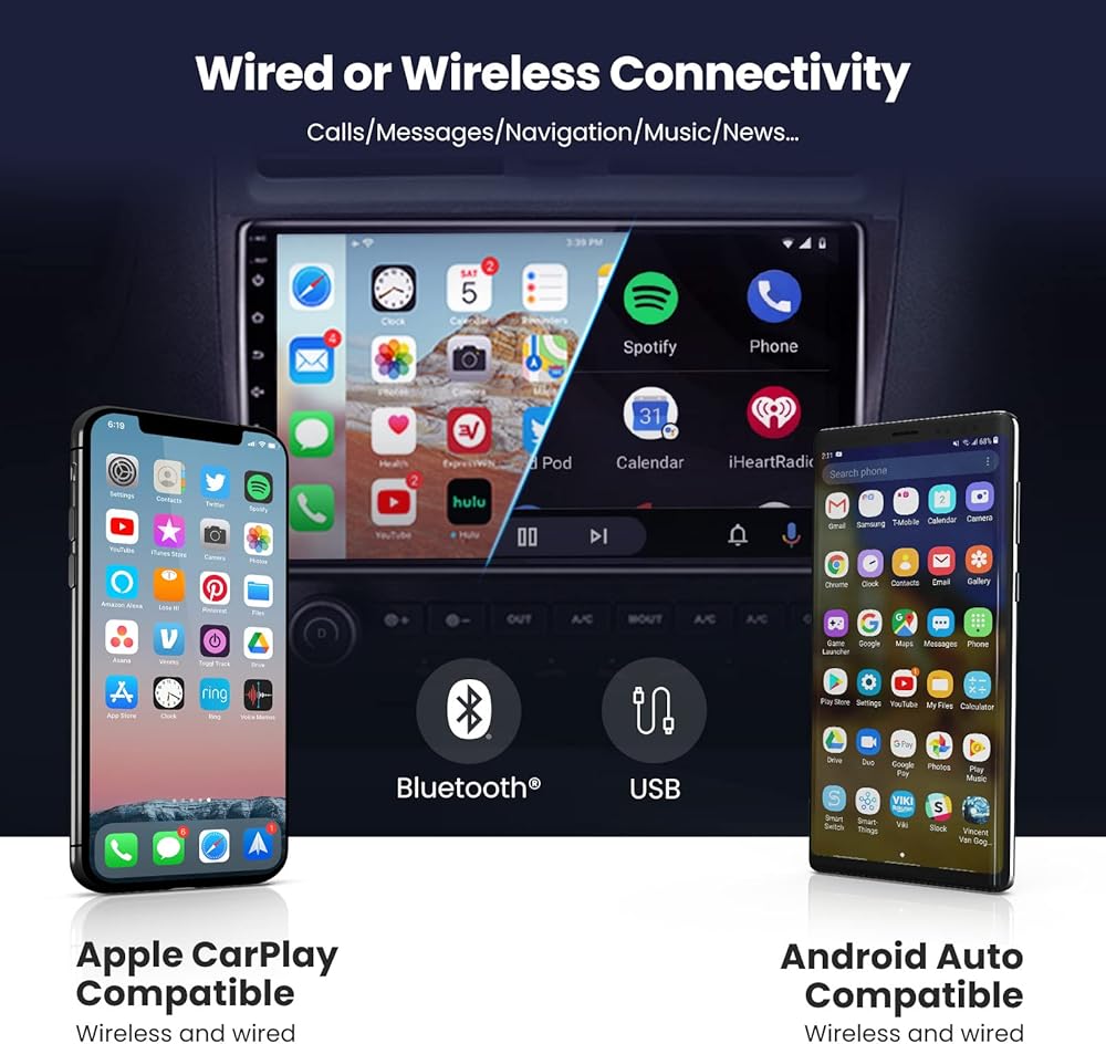 [سلكي أو لاسلكي] متوافق الآن مع اندرويد اوتو وابل كار بلاي وميرور لينك إما من خلال اتصال لاسلكي أو اتصال USB سلكي.